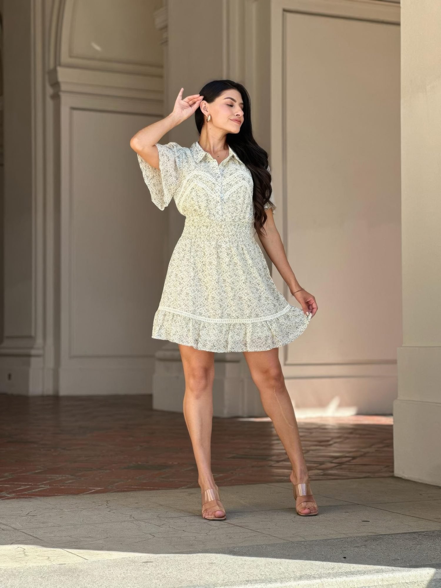 Product Description: Feminine and fresh, this floral print saffy lace smocking waist mini dress is a must-have for sunny days and special occasions alike. Featuring delicate lace accents and a smocked waist, it flatters your figure while offering a comfortable, flexible fit. The playful floral print adds a touch of romance, while the lightweight polyester fabric ensures effortless movement. Perfect for brunch dates, garden parties, or weekend outings, this mini dress embodies easy elegance and charm. Product Details: Made from 100% Polyester Allover floral print with delicate lace detailing Smocked waist for a flattering, comfortable fit Lightweight fabric ideal for warm-weather wear Mini length with soft, flowy silhouette Perfect for daytime events or casual occasions Size Guide: For accurate sizing guidance, please review our size chart available on the website. Shipping and Returns: Fast Shipping: We offer speedy delivery to your doorstep. Hassle-Free Returns: If you’re not completely satisfied, our flexible return policy ensures your peace of mind.