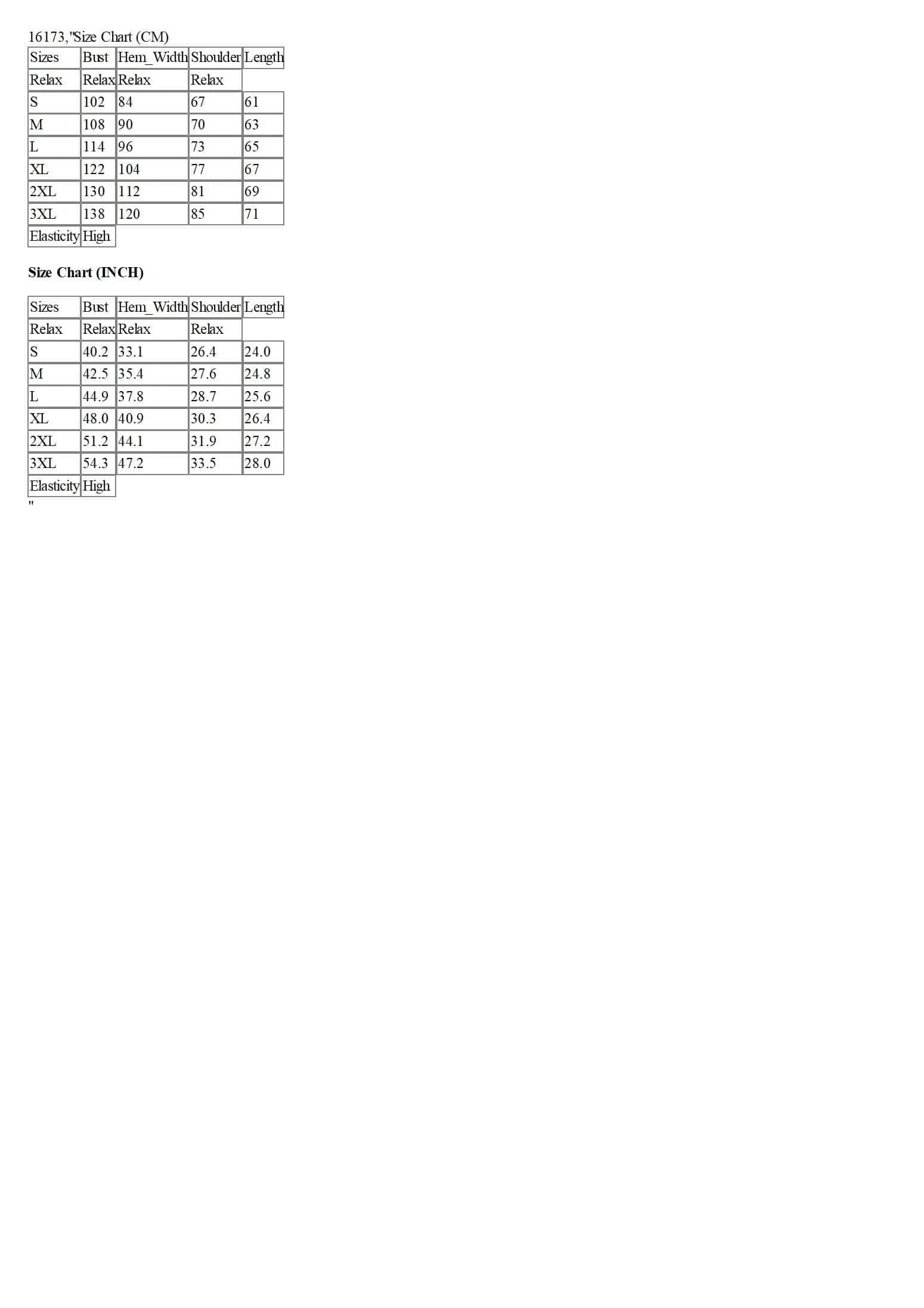 Sizes | Bust | Hem_Width | Shoulder | Length |