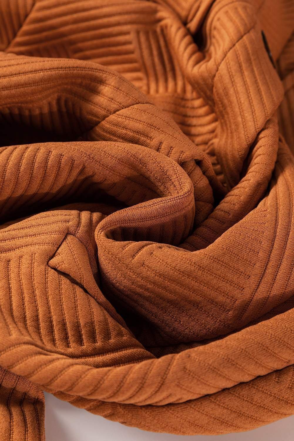 The textured fabric enhances the coat’s visual appeal and provides a cozy feel.