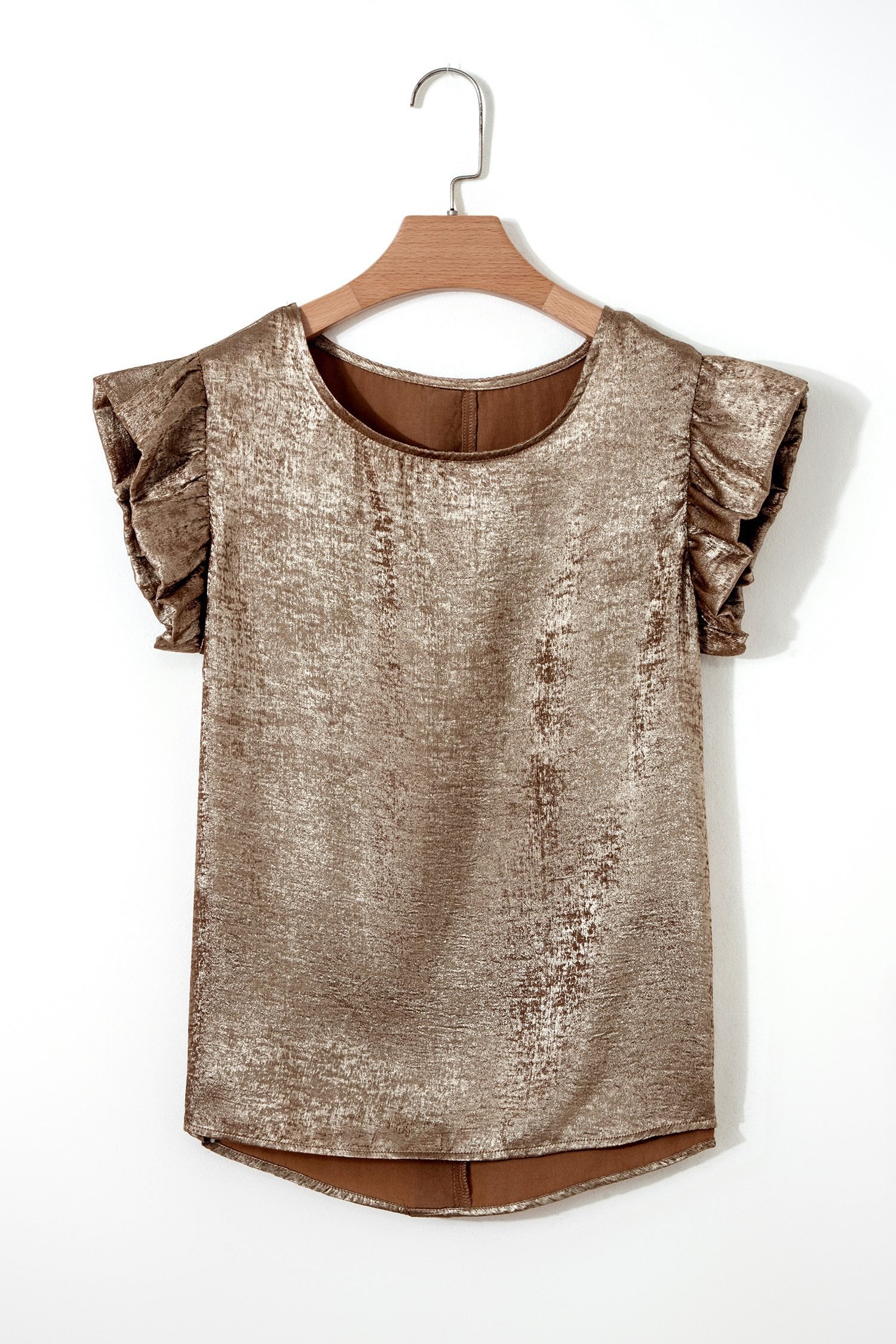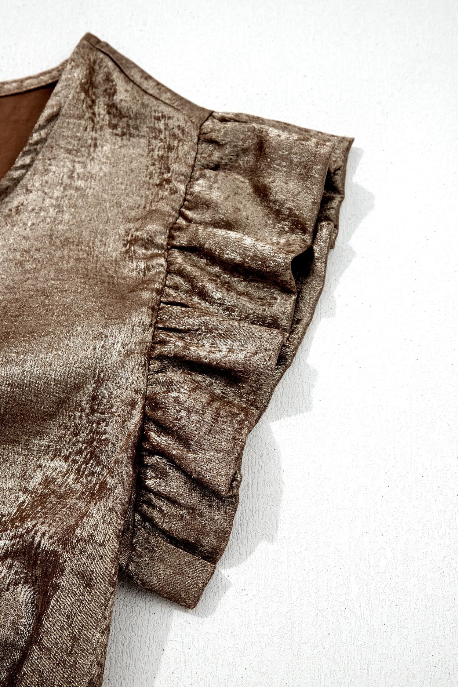 Ruffle trim detail creates a soft, feminine finish.