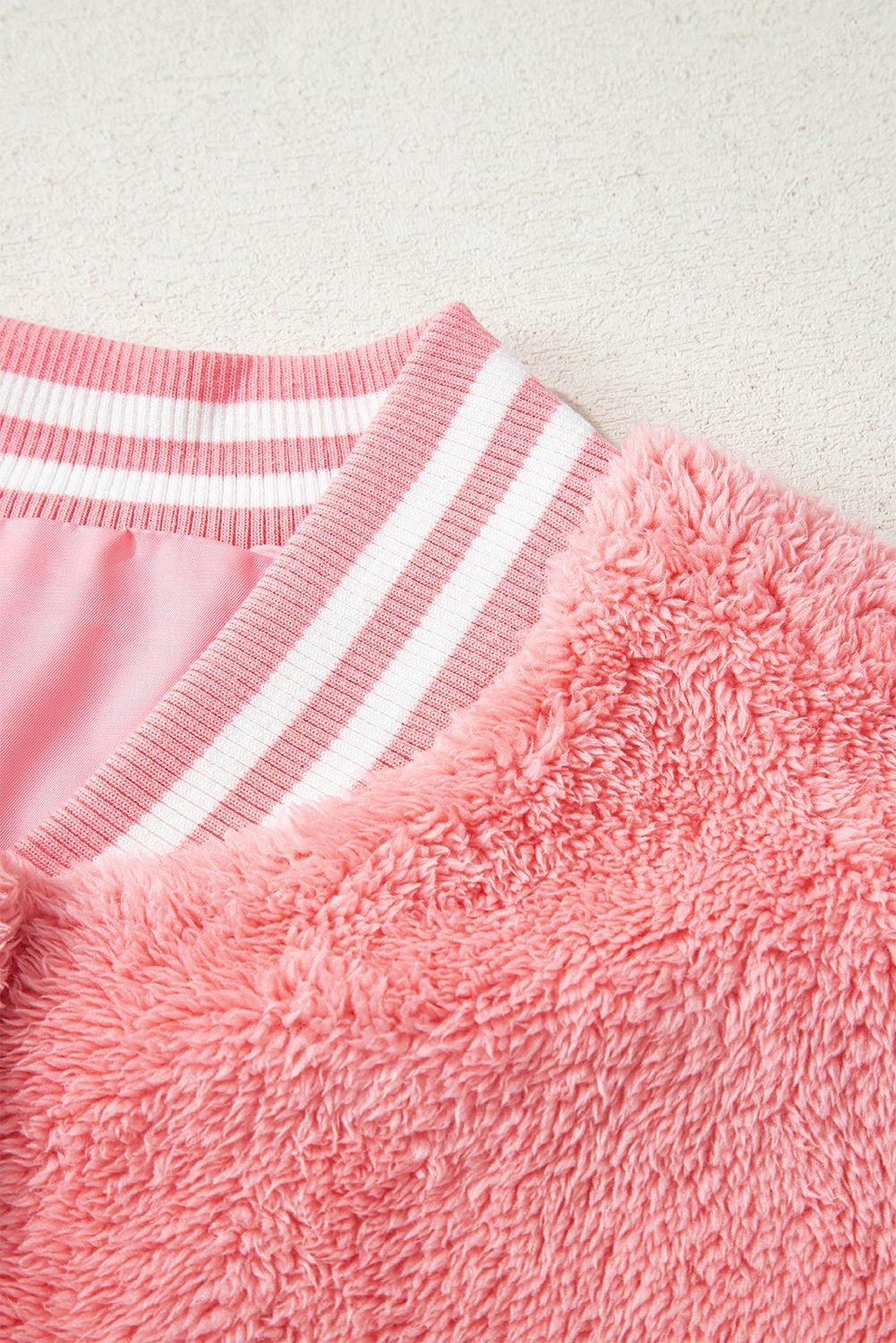Gossamer Pink Varsity Striped Banding Patchwork Winter Plush Vest