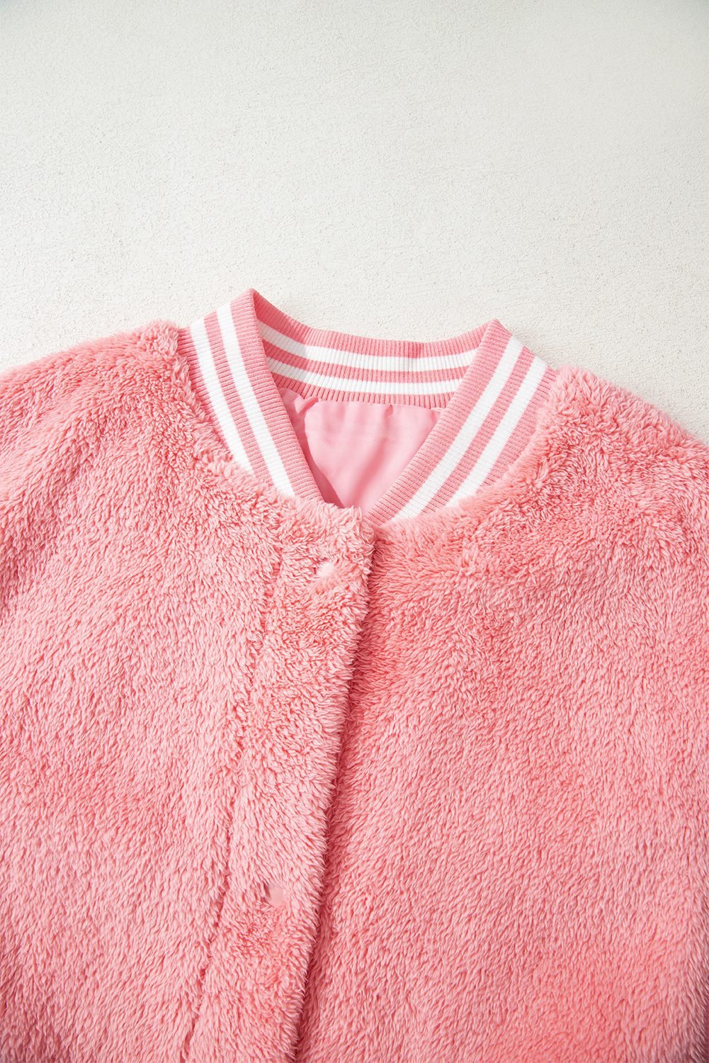 Be the first to review “Gossamer Pink Varsity Striped Banding Patchwork Winter Plush Vest”