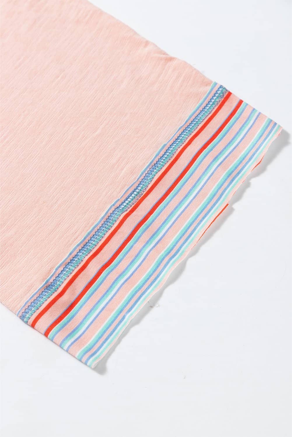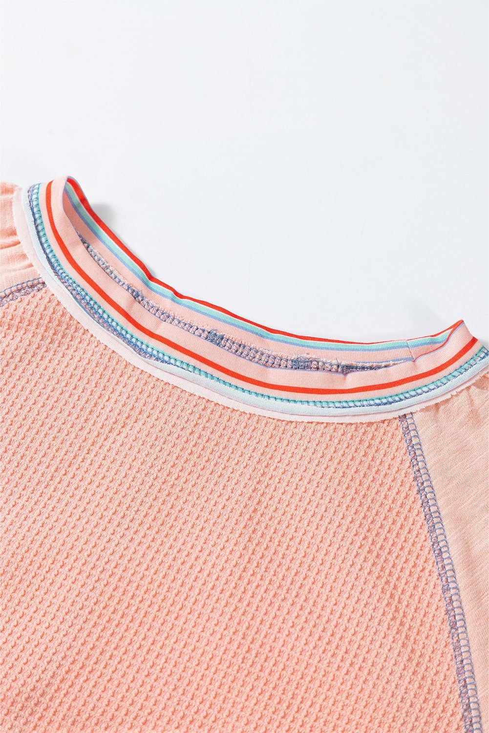 Eye-catching contrast stripe stitching adds detail, raw hem finished.