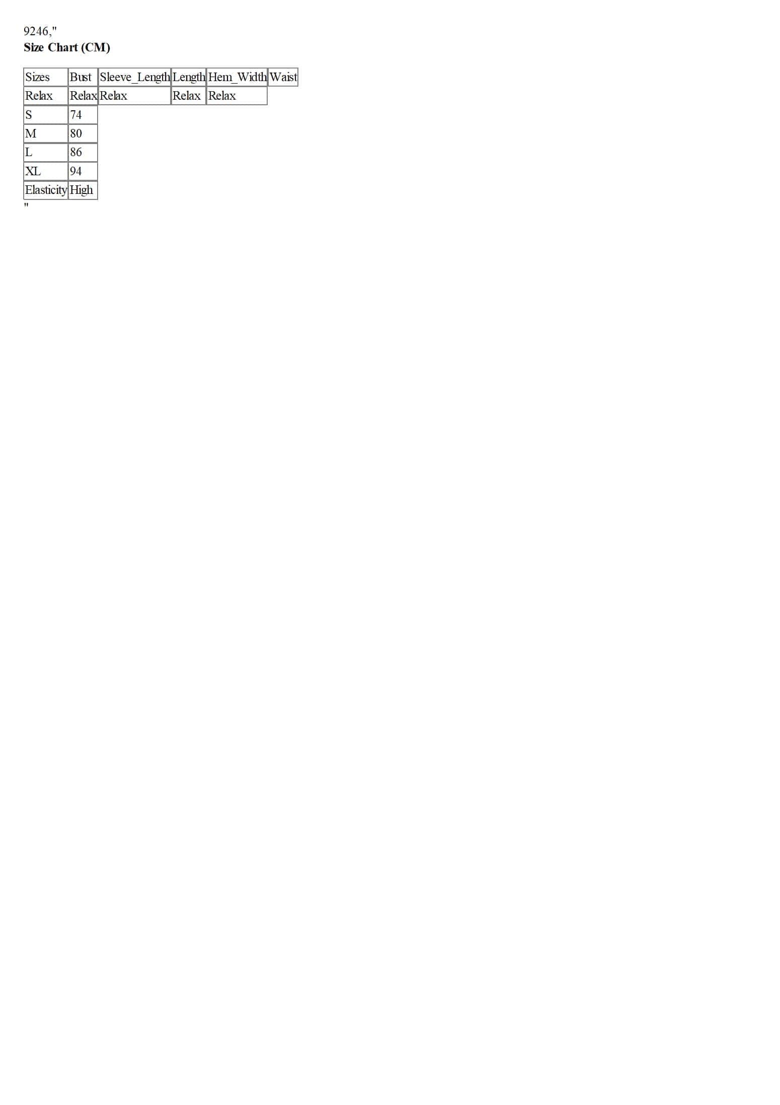 Size Chart (CM)