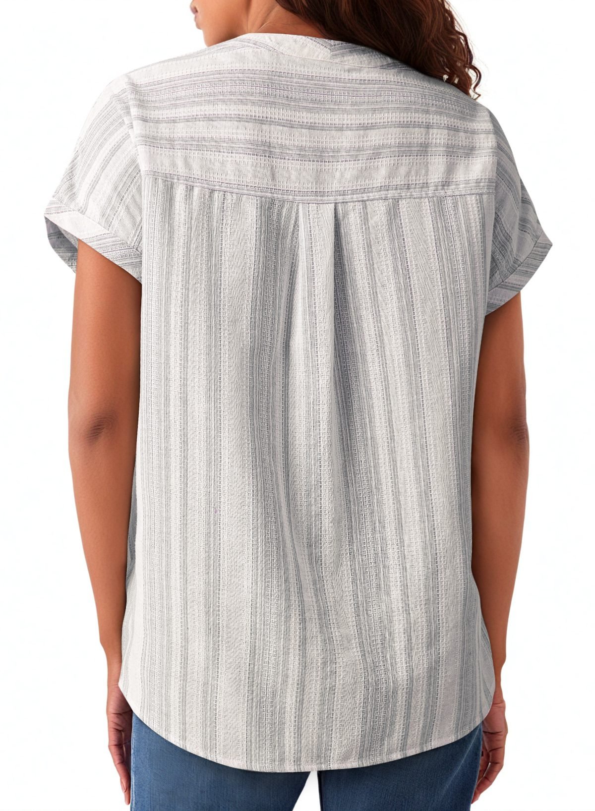 Short sleeve blouse provides relaxed, all-day comfort.