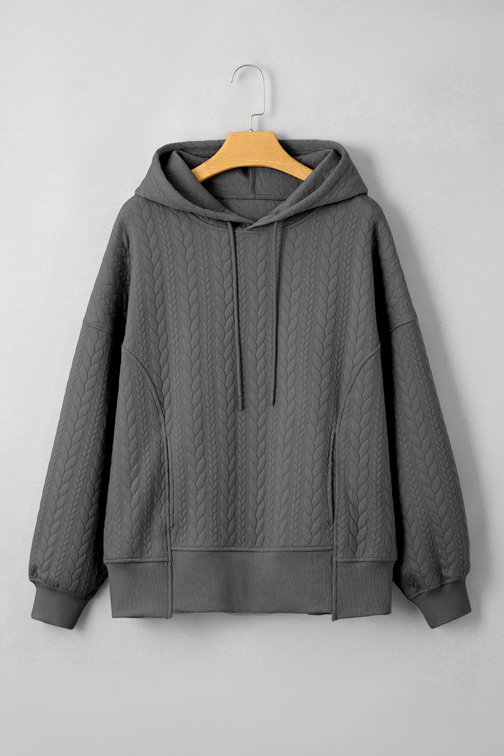 Gray Cable Textured Baggy Solid Hoodie