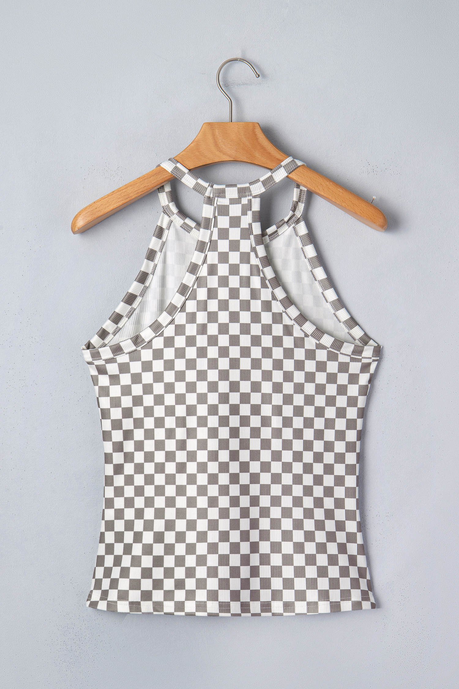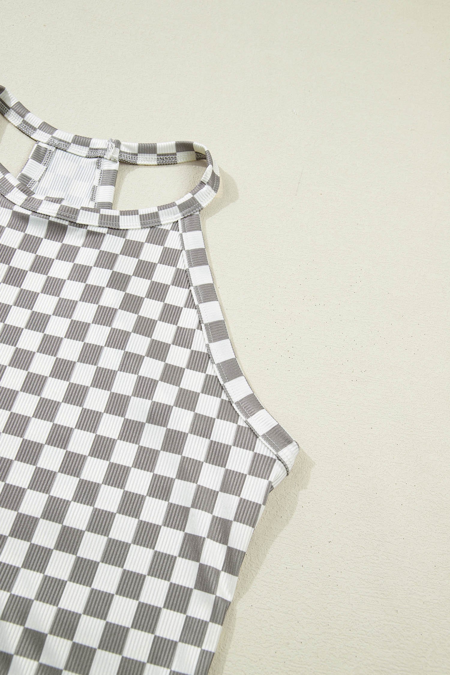 Cropped tank with a checkered design and stylish textured knit.