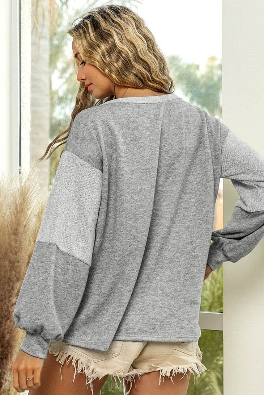Be the first to review “Gray Contrast Patchwork Double Chest Pocket Top”
