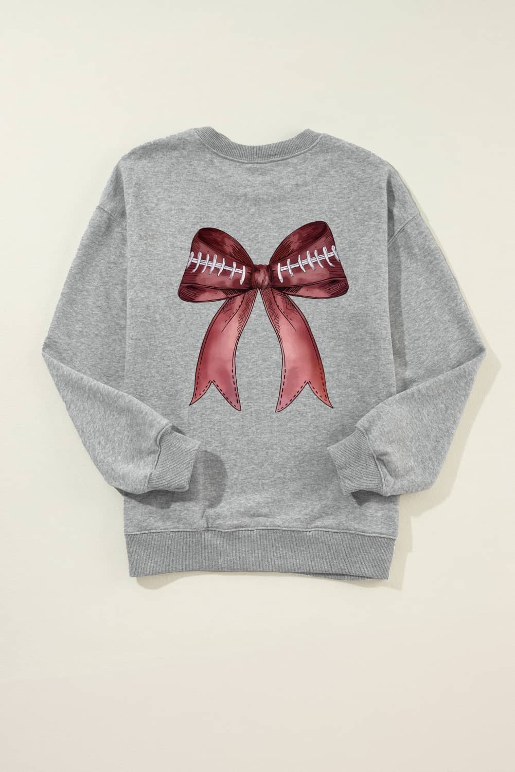 Be the first to review “Gray Football Bow Print Drop Shoulder Pullover Sweatshirt”