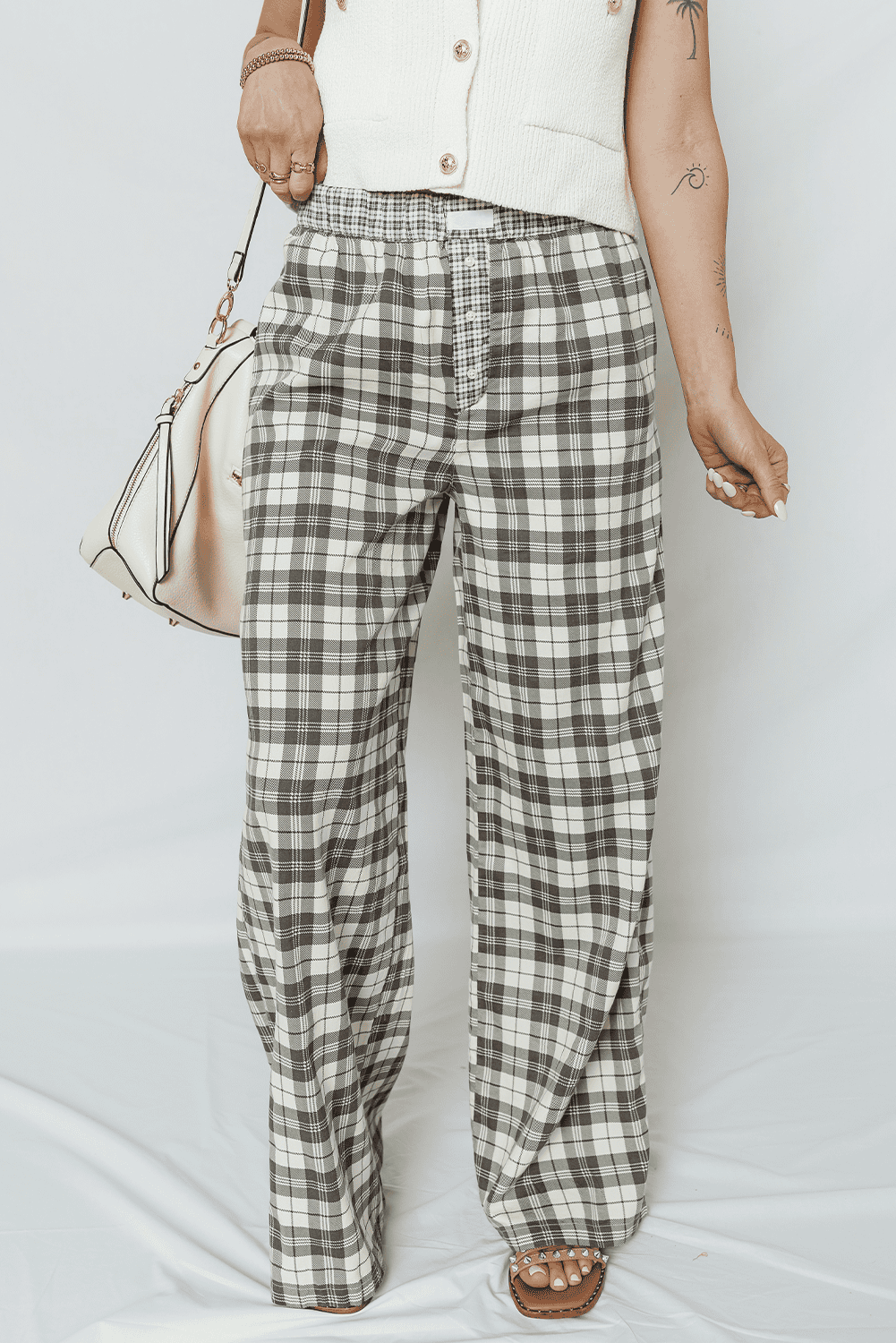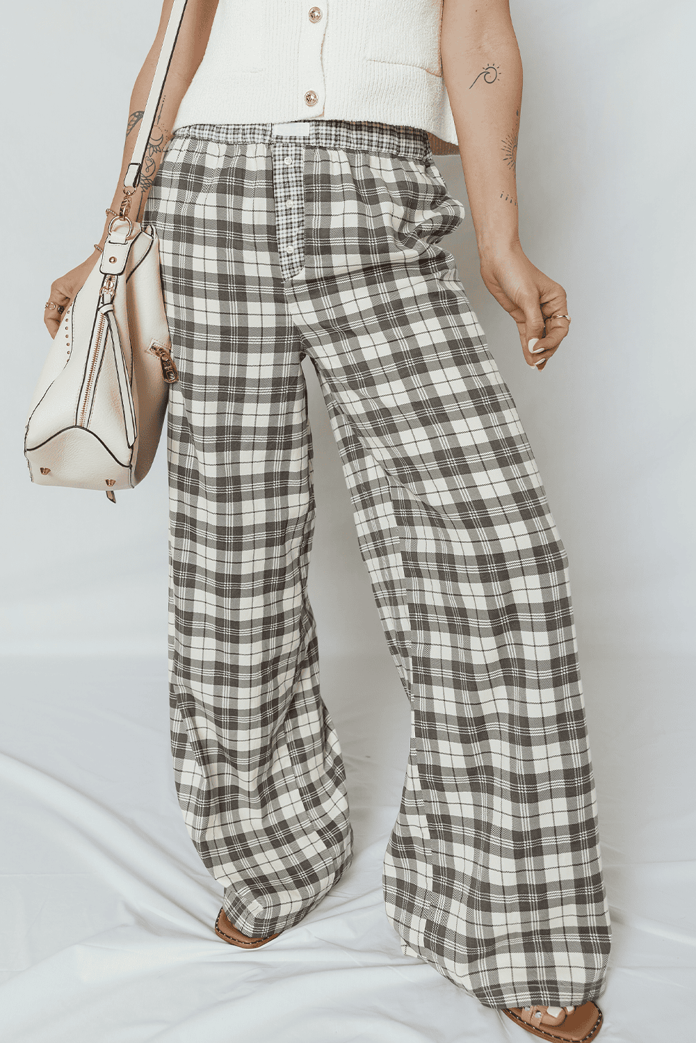 Lightweight fabric keeps these plaid pants comfy all day long.