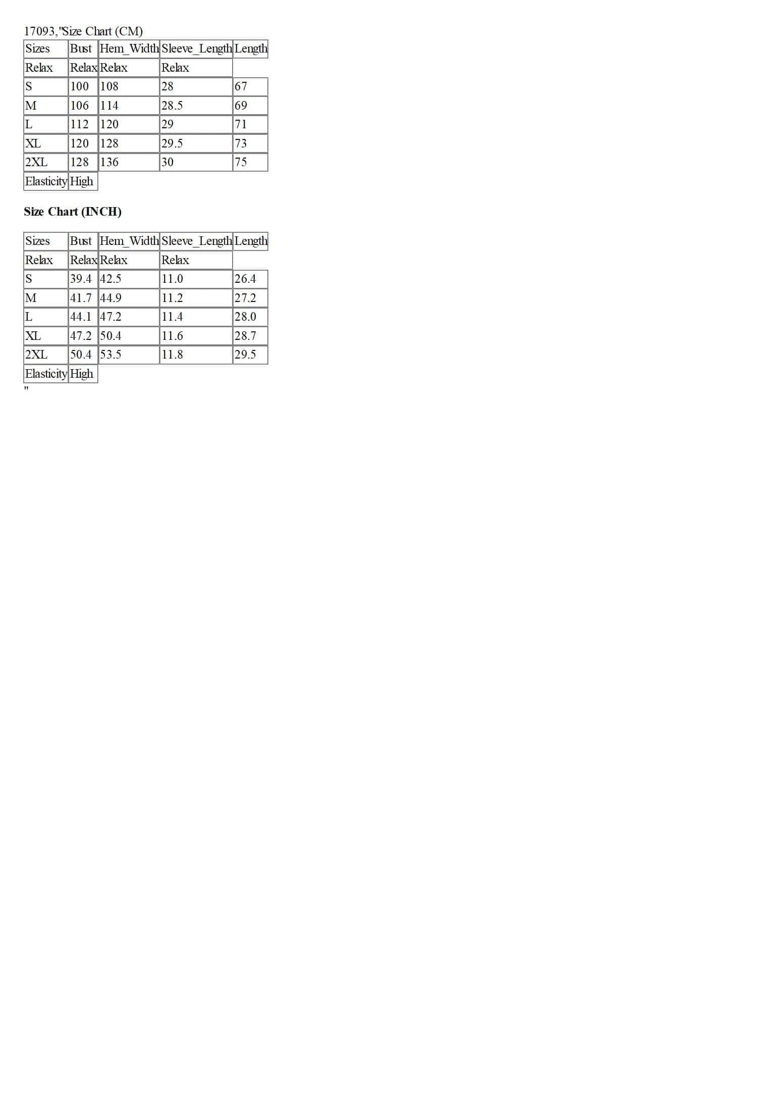 Size Chart (CM)