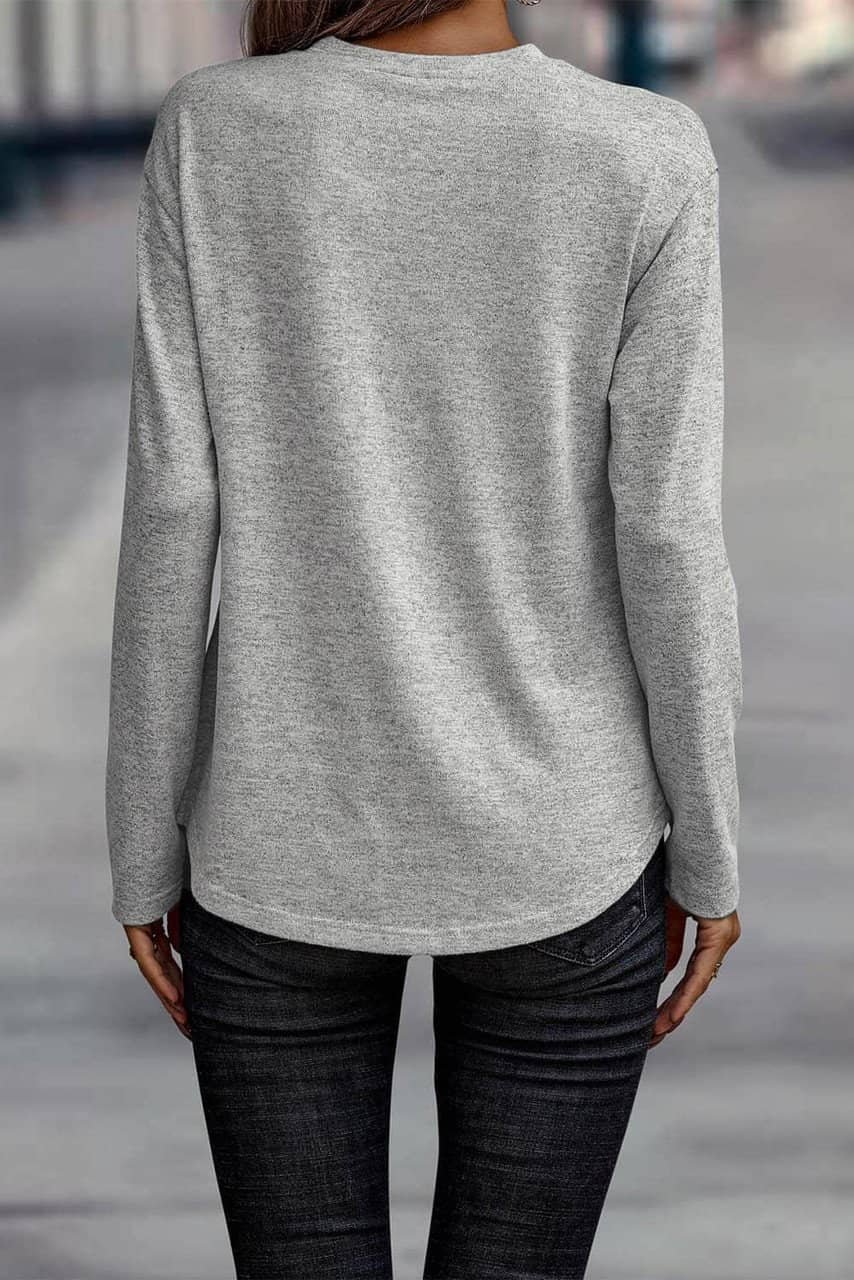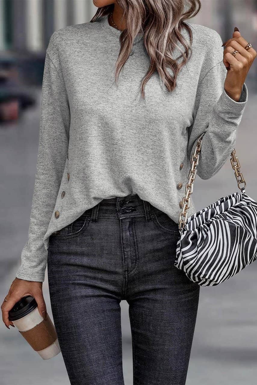 Be the first to review “Gray Side Buttons Crew Neck Knit Top”