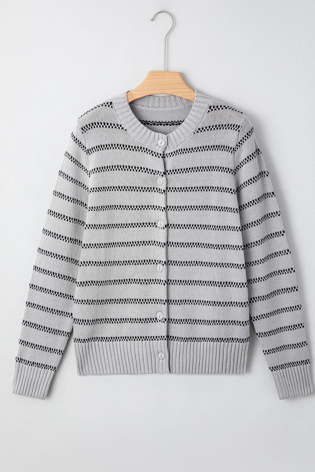Short cardigan length pairs easily with high-waisted bottoms.