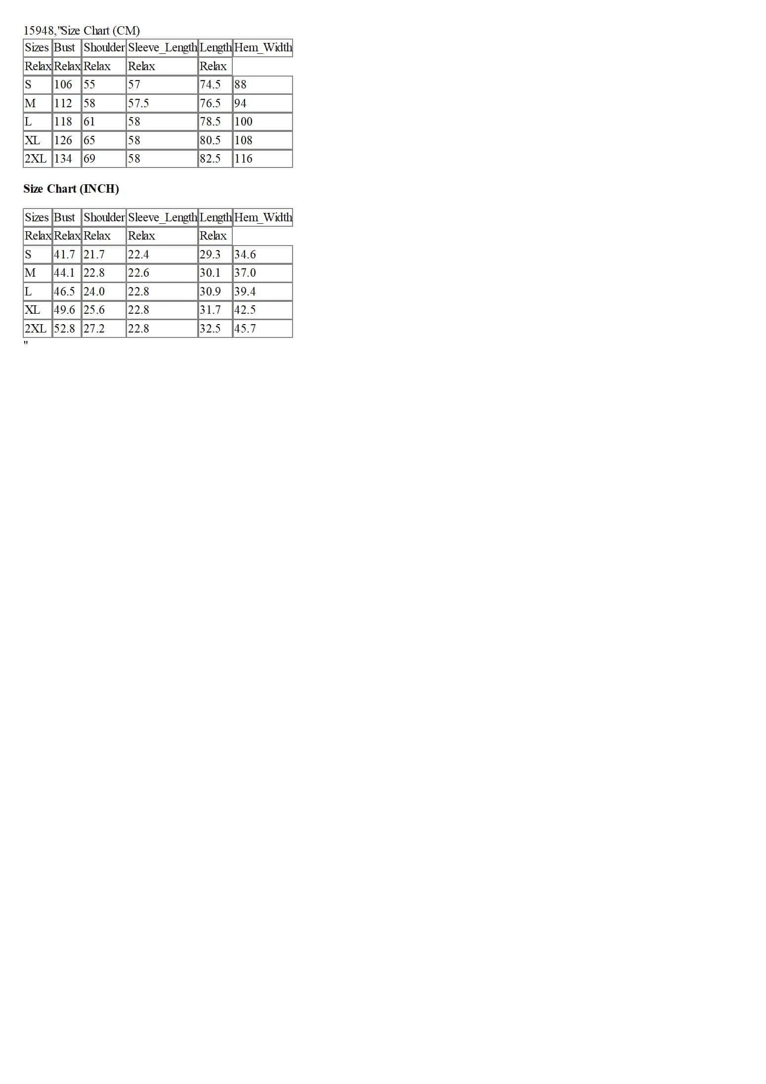 Sizes | Bust | Shoulder | Sleeve_Length | Length | Hem_Width |