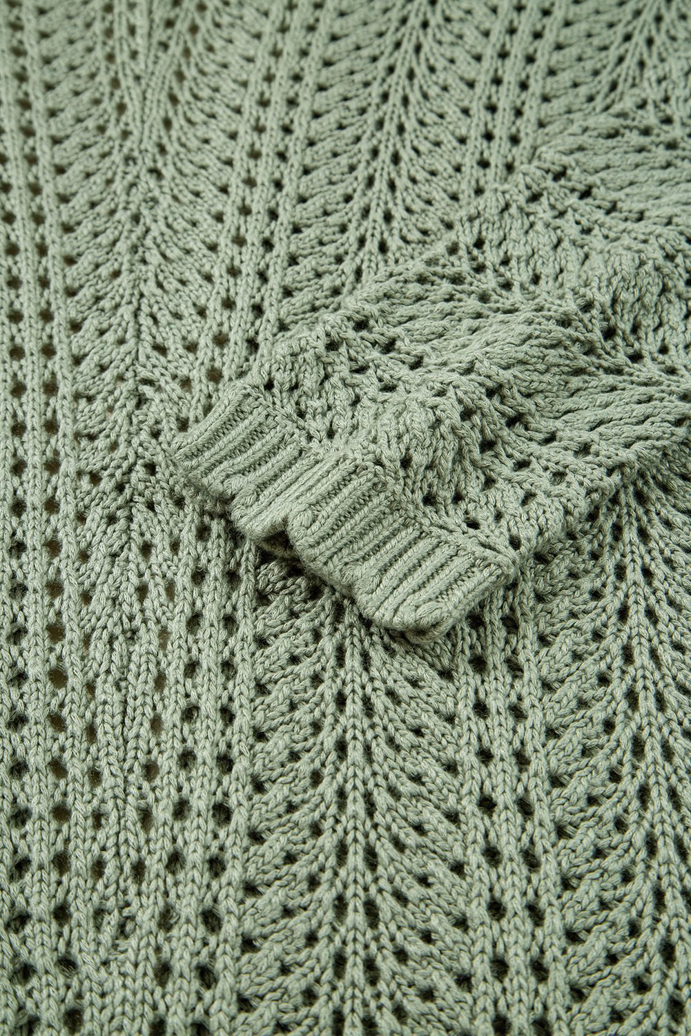 Green Bay Scalloped Edge Eyelet Knit Batwing Sleeve Cardigan