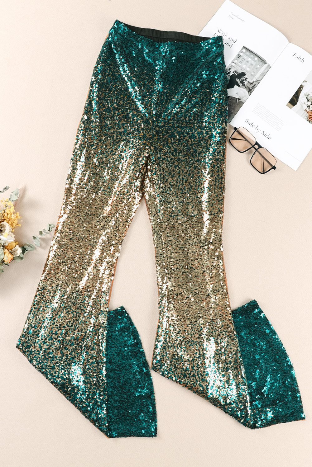 •Stunning sequin flares, easy pull on style with elastic waistband