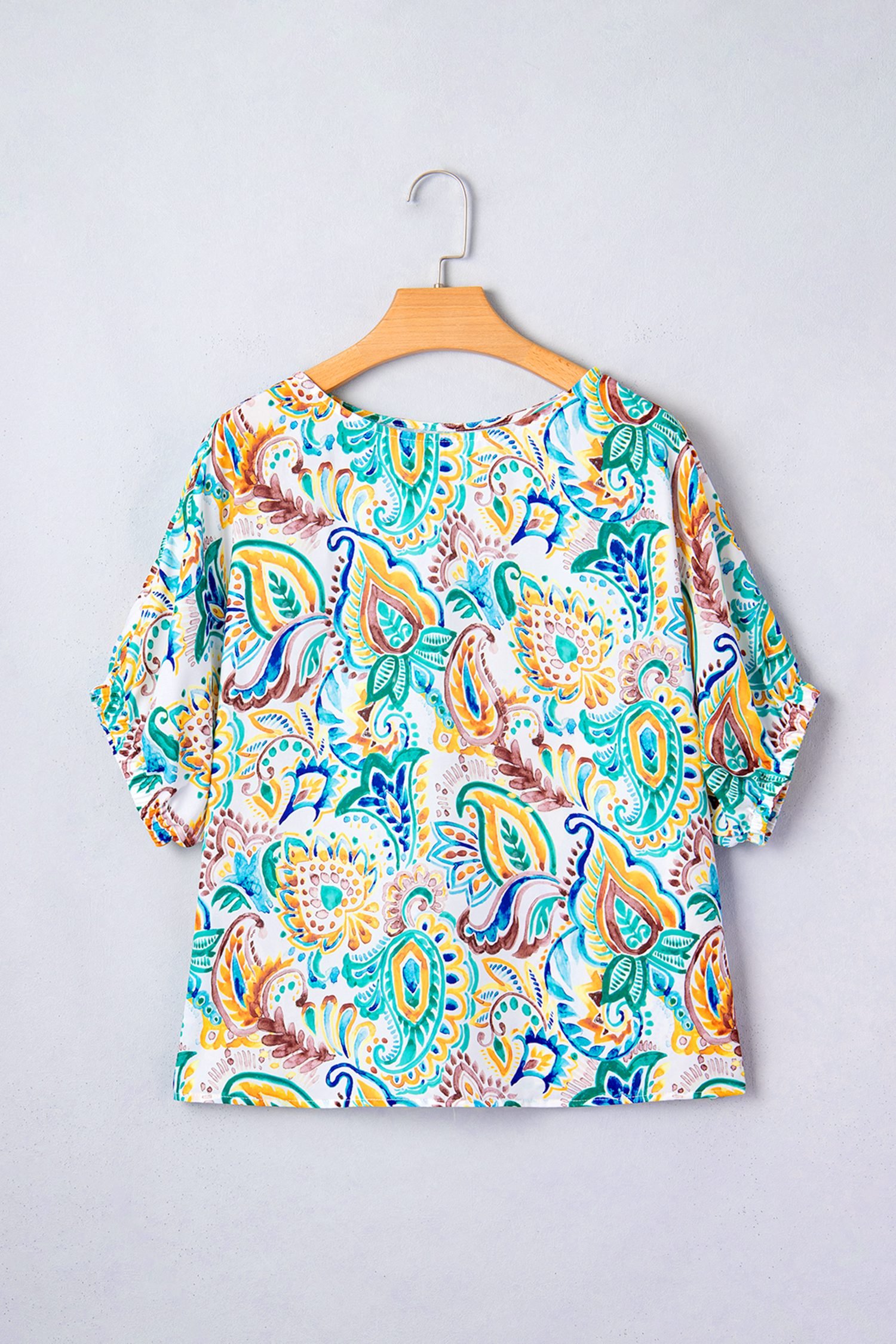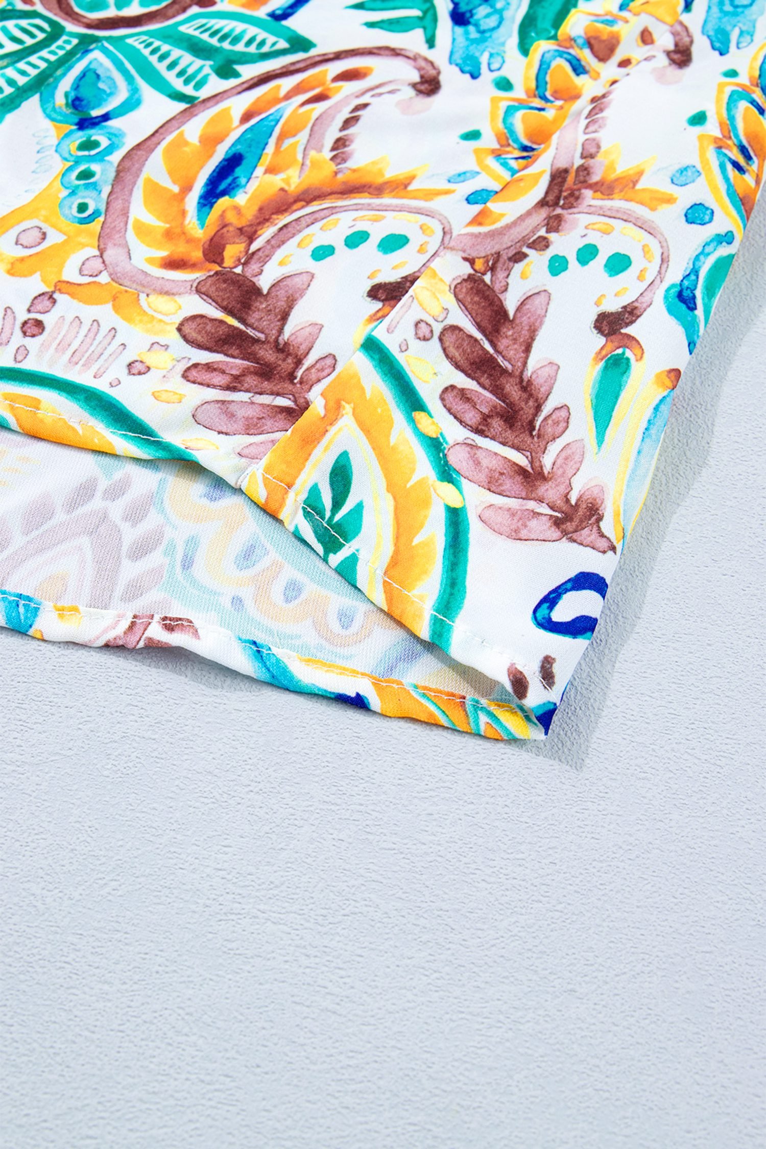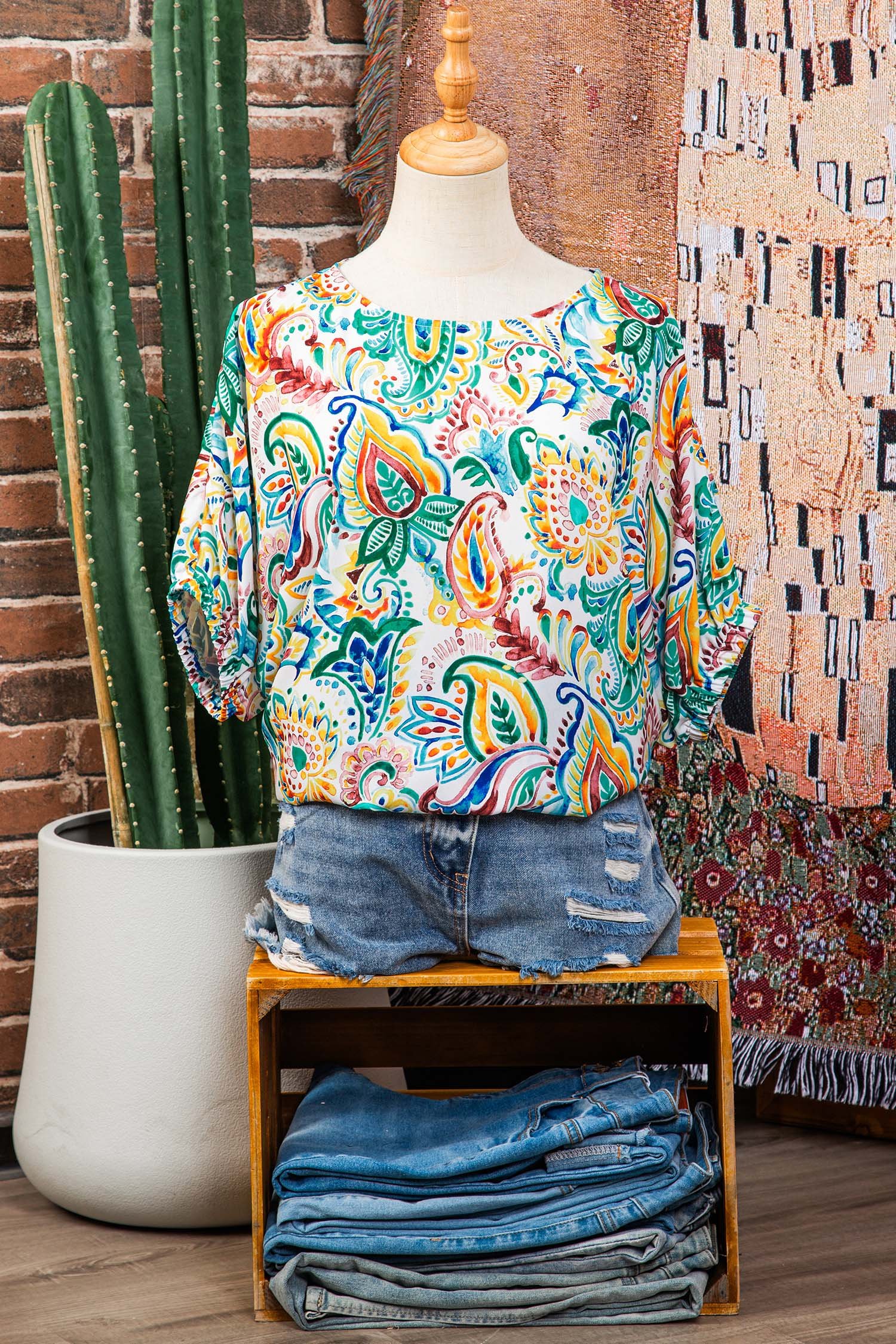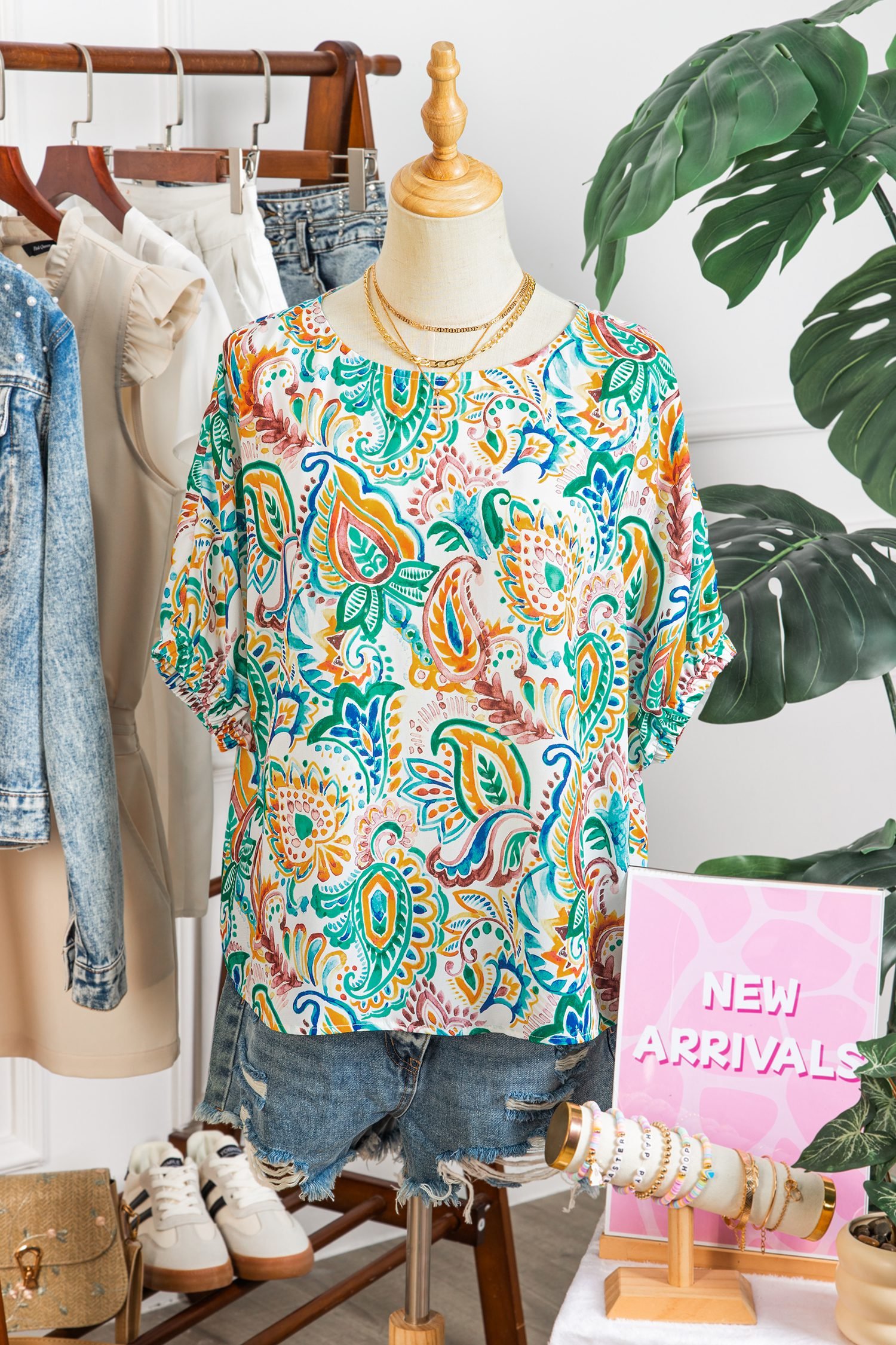 Featuring a crew neck and short sleeves with elastic cuffs.