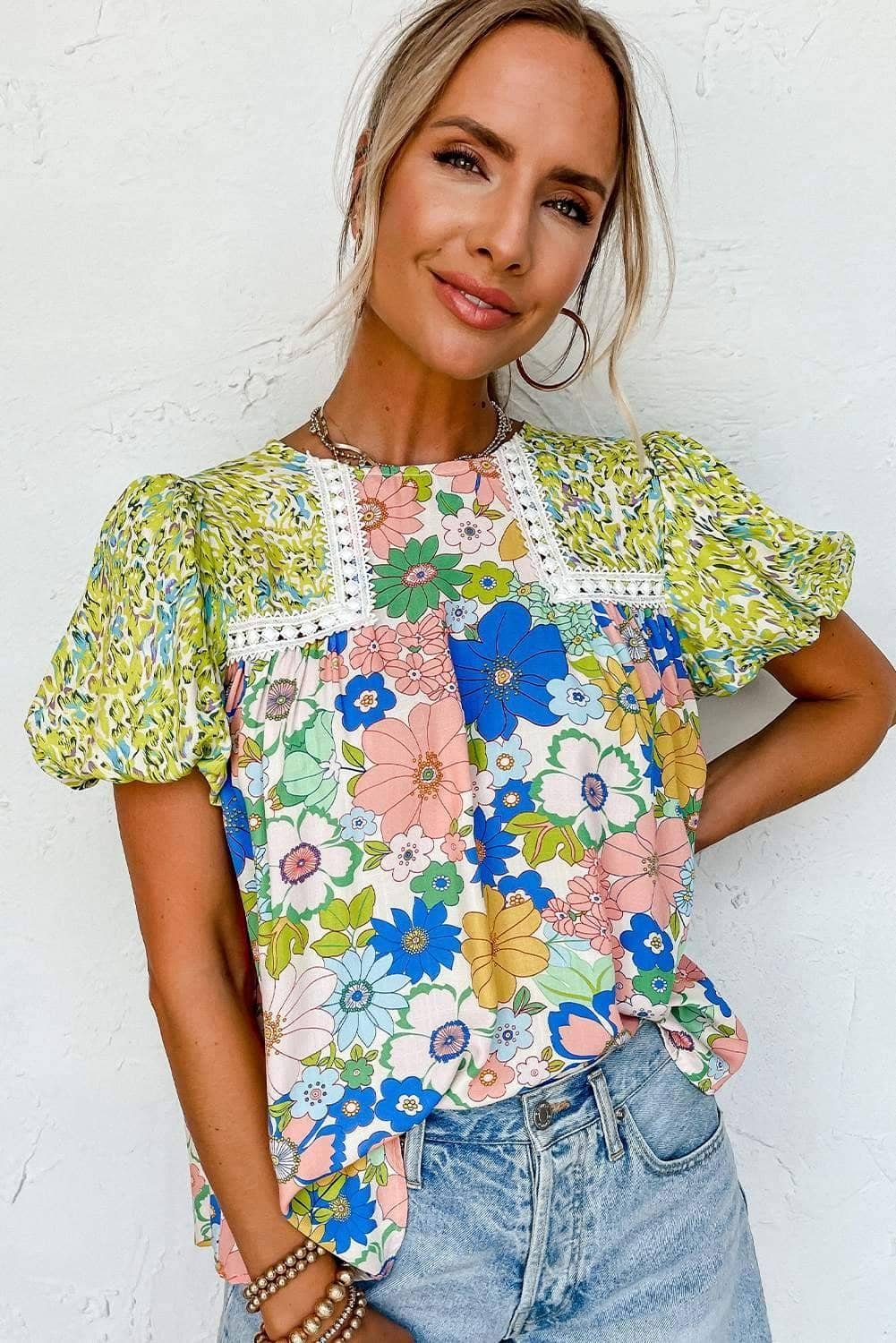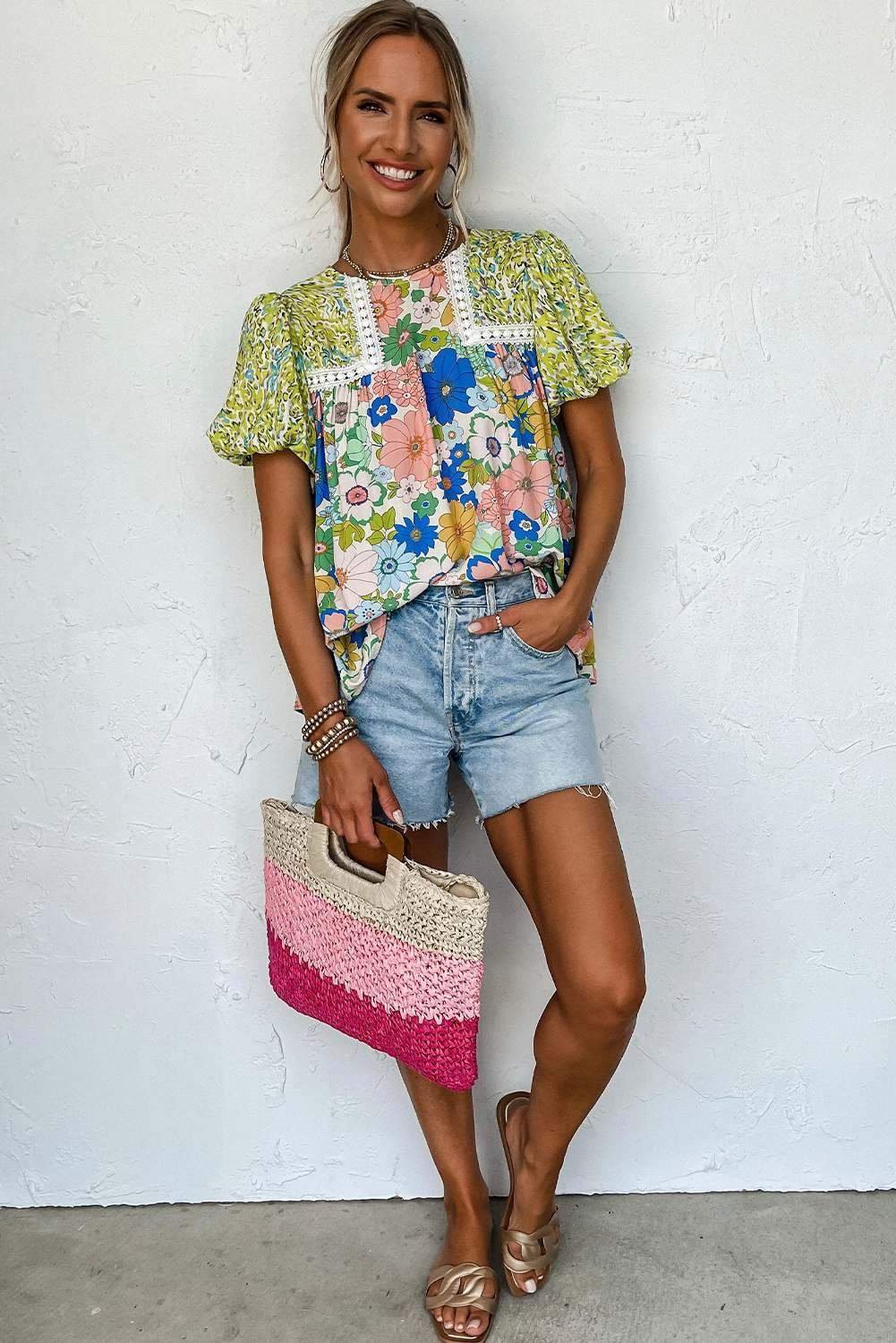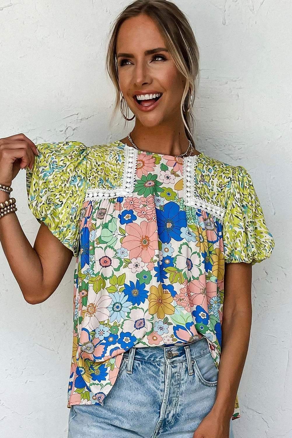 - This floral blouse offers a fresh and feminine touch