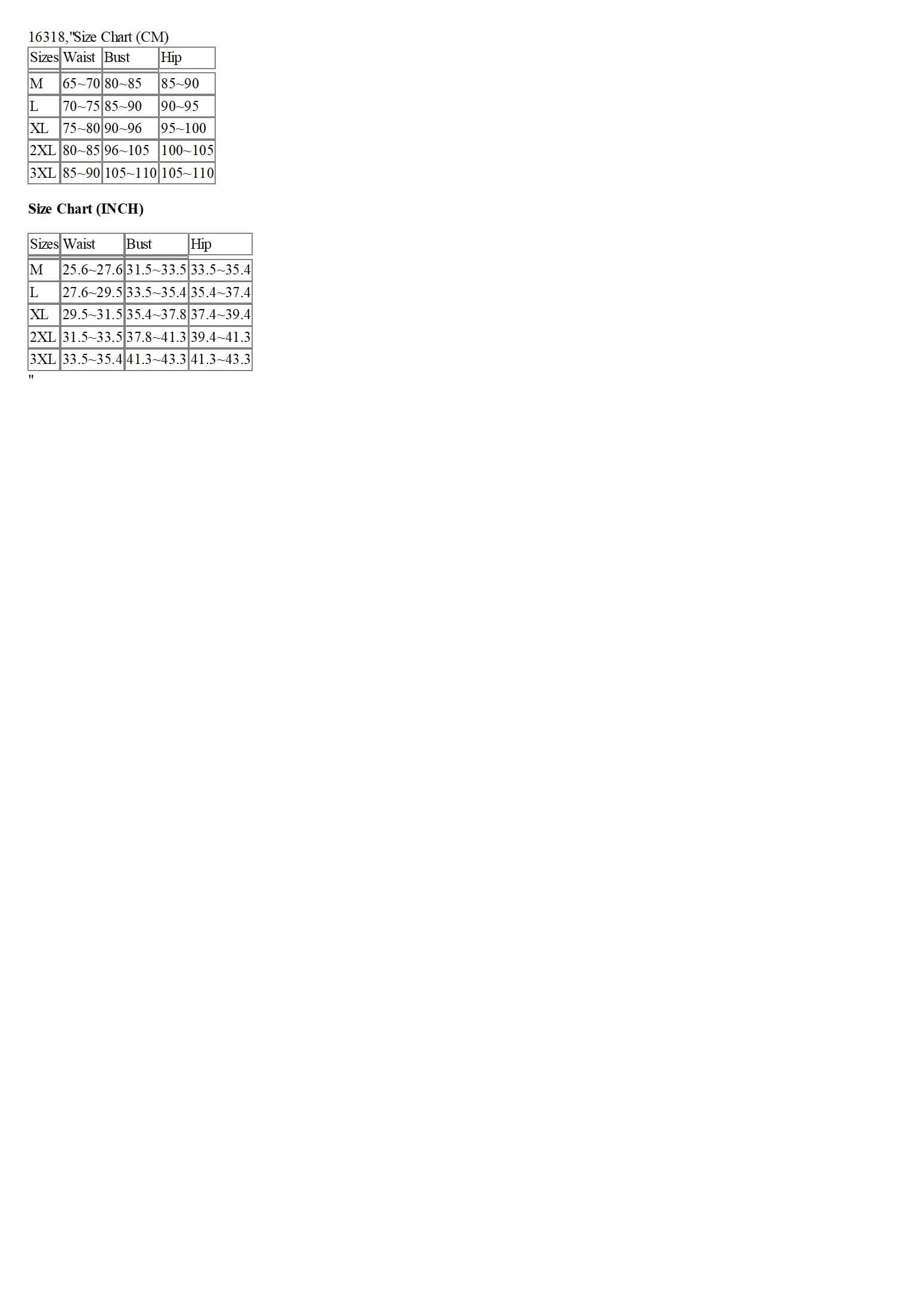 Sizes | Waist | Bust | Hip |