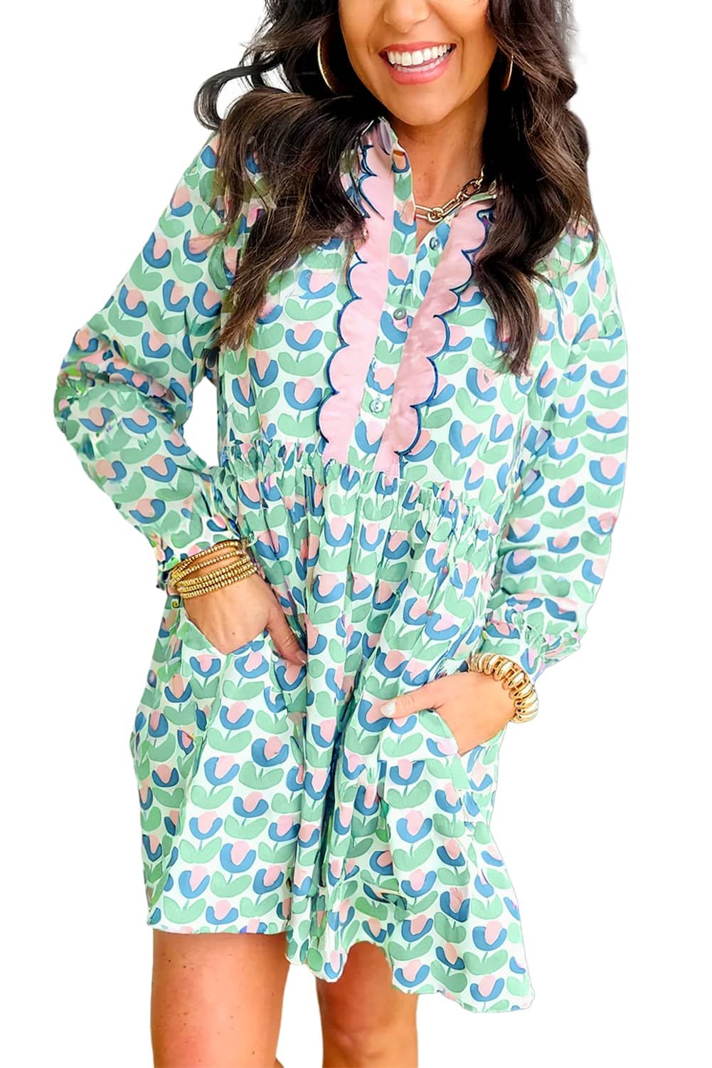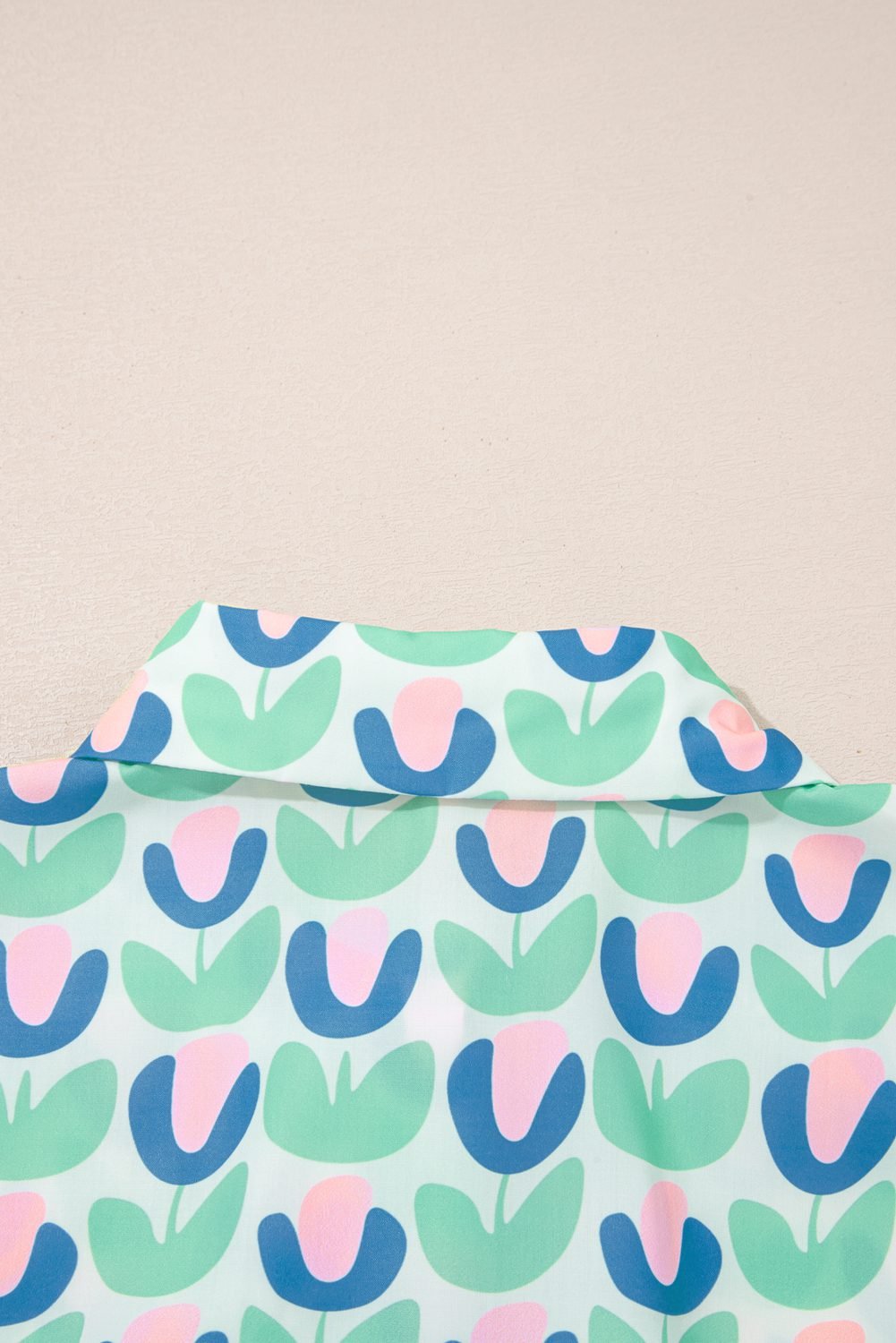 It has a shirt collar with half buttoned neck closures and cuffs.