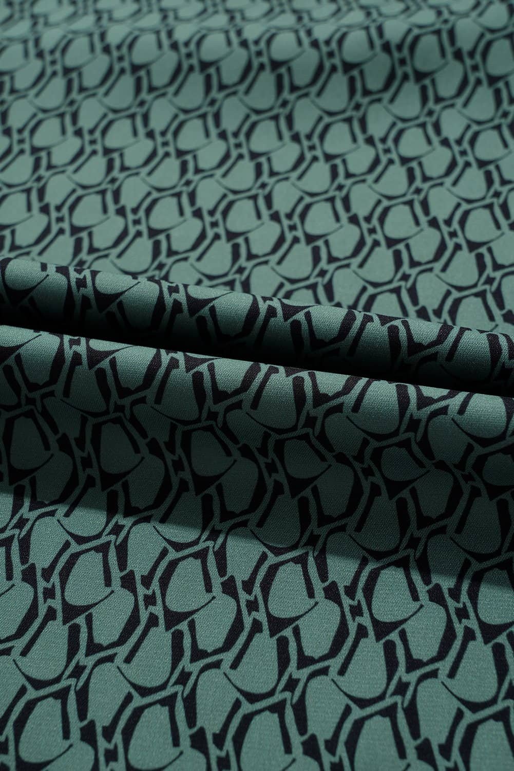Green Geometric Print Notched Neck Puff Sleeve Blouse