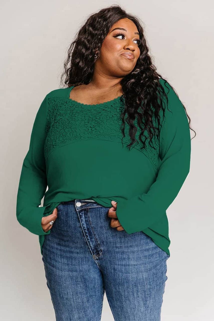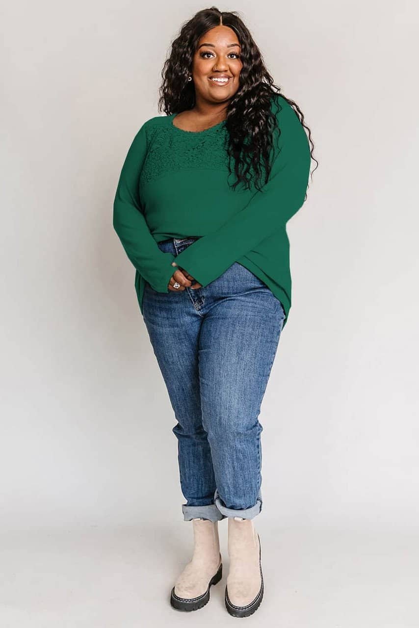 - Featured with v-neckline, long sleeves, lace panel, and slim fit
