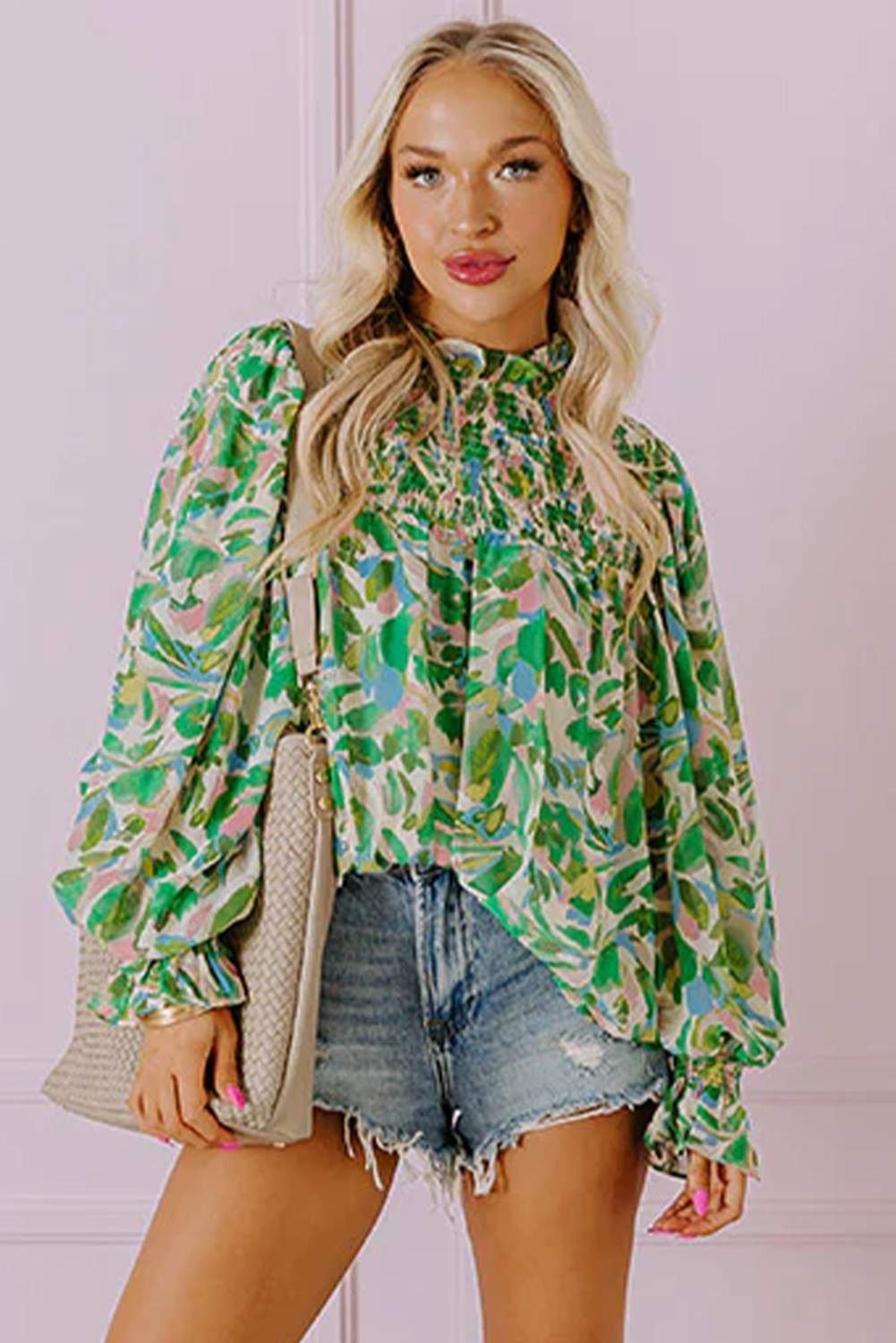 - This printed blouse adds a touch of botanical charm to your ensemble.