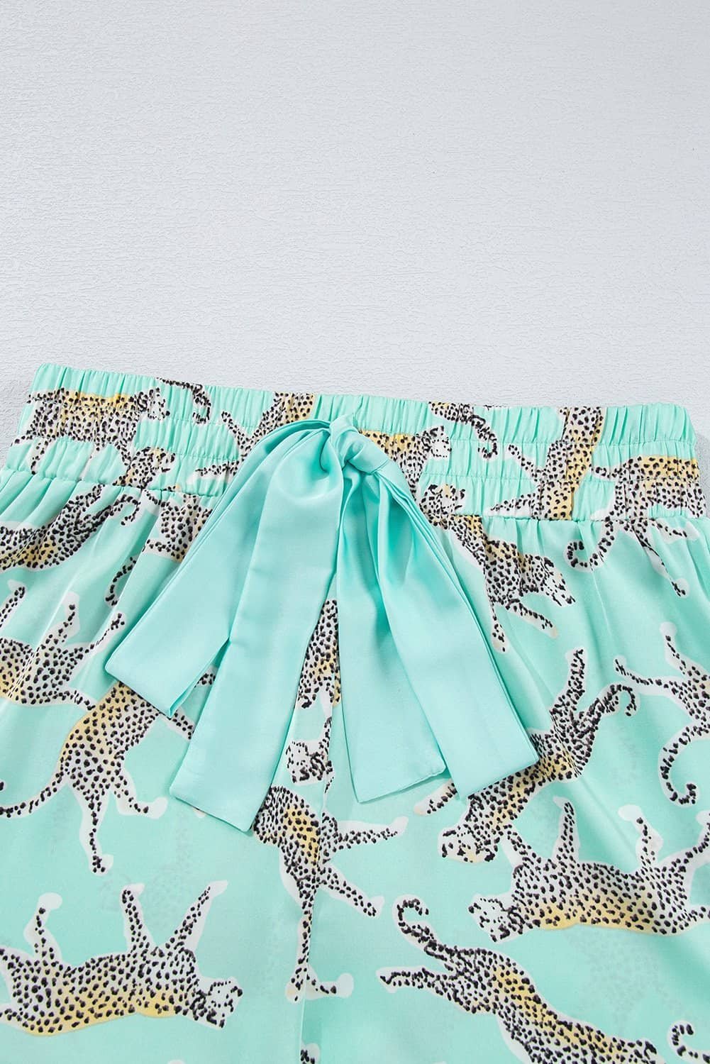 High waisted ruffle shorts with cinched velvet drawstring.