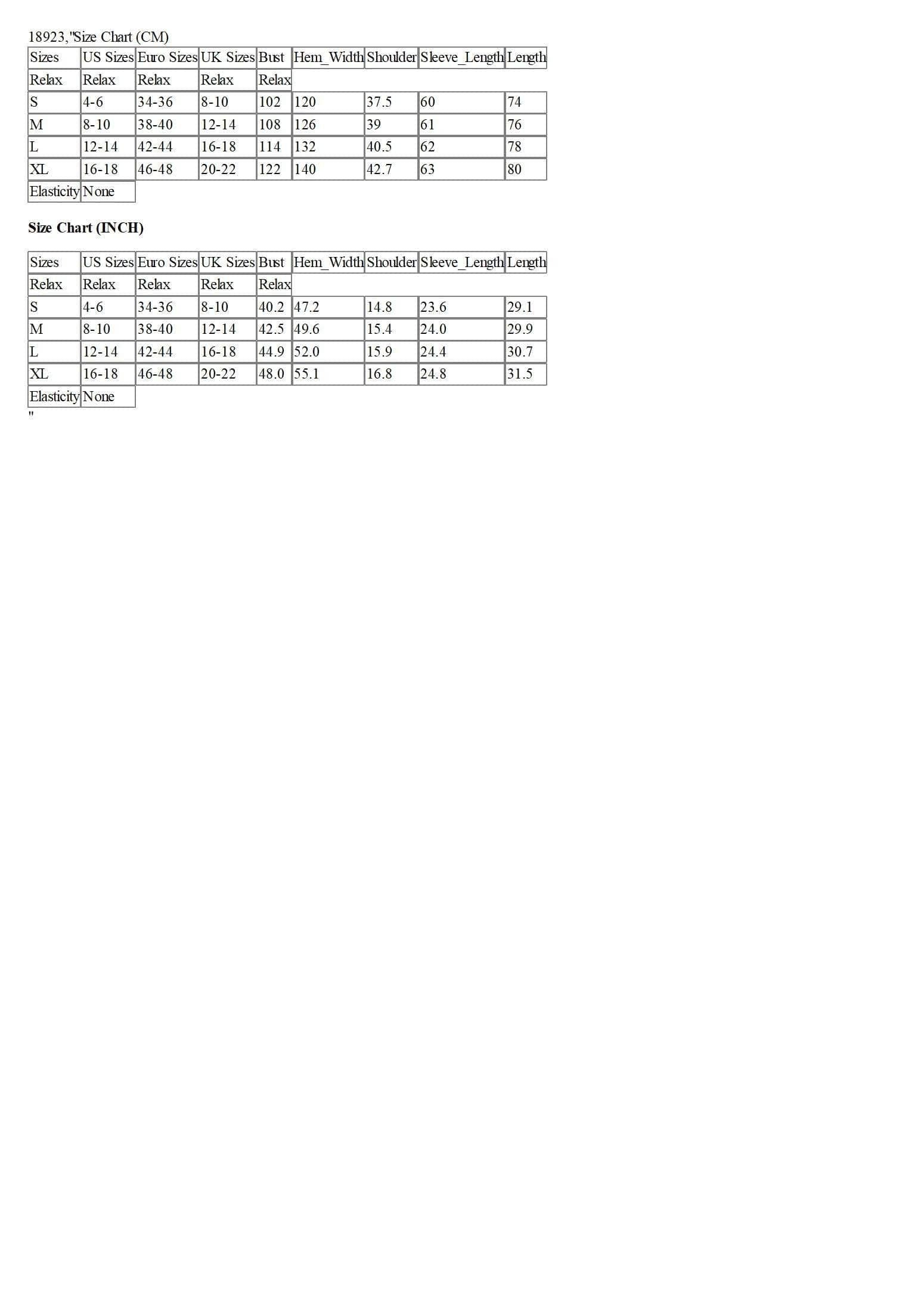 Size Chart (CM)