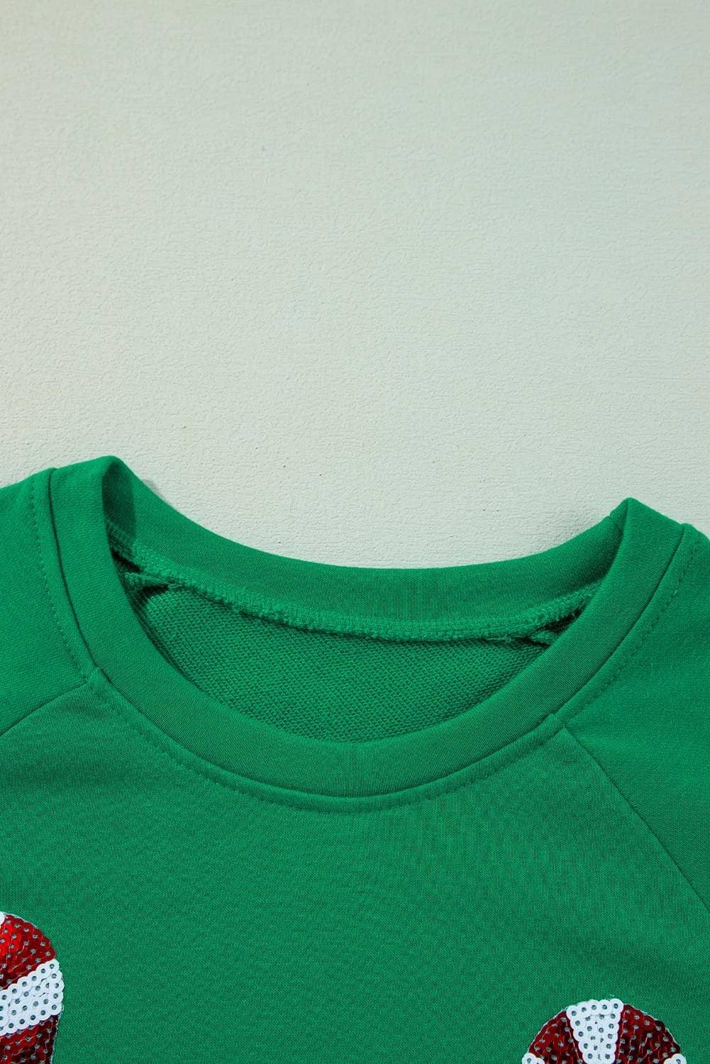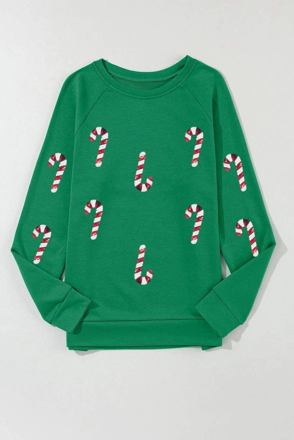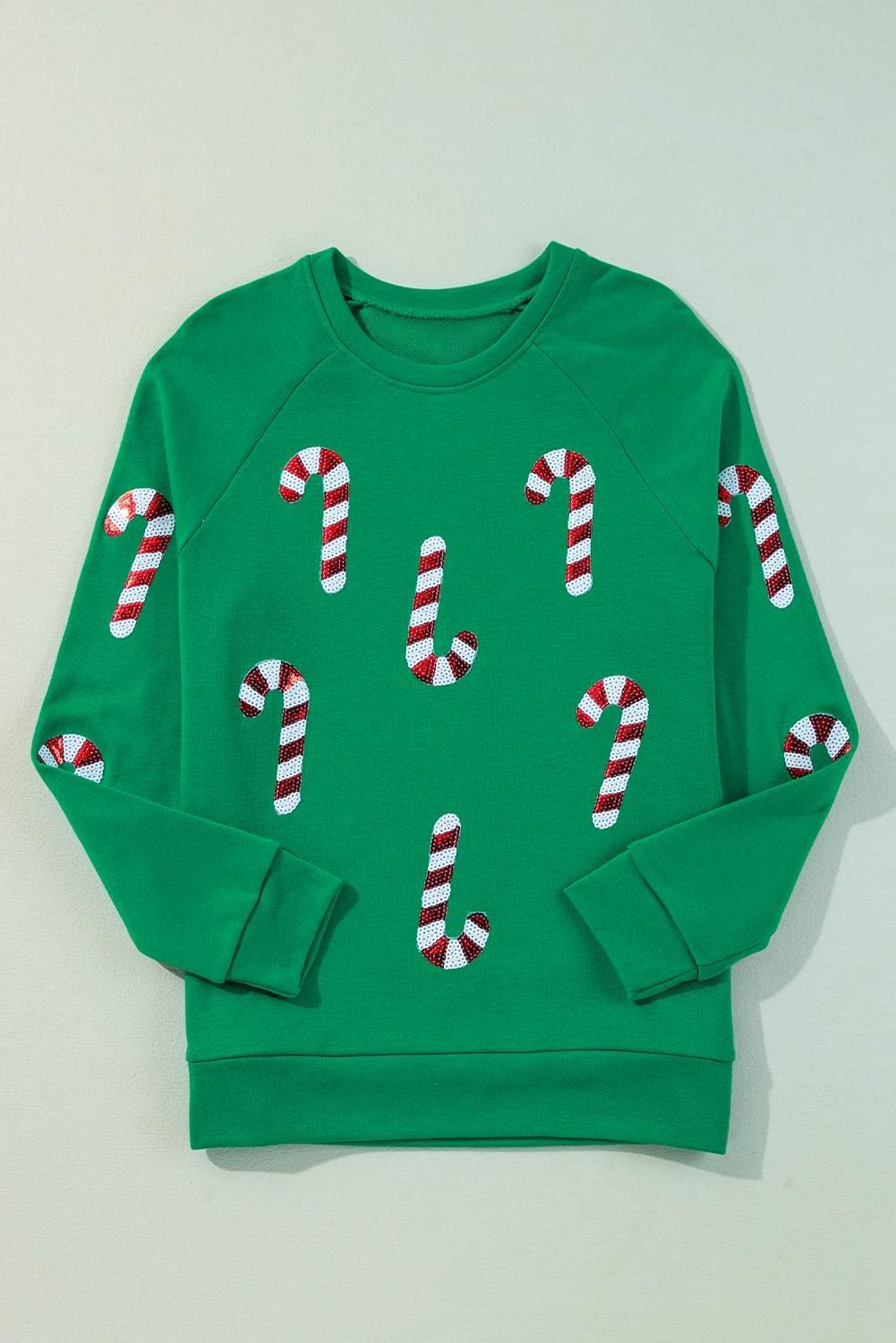 Sparkle and shine with a dazzling sequined graphic of a candy cane.