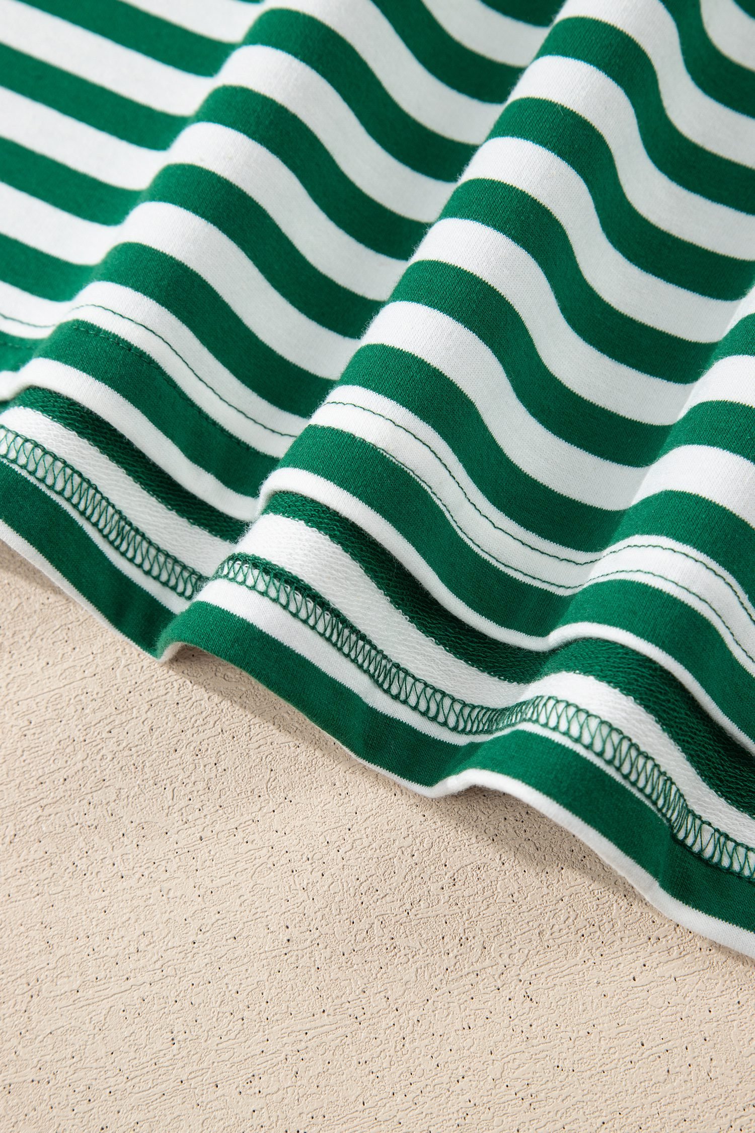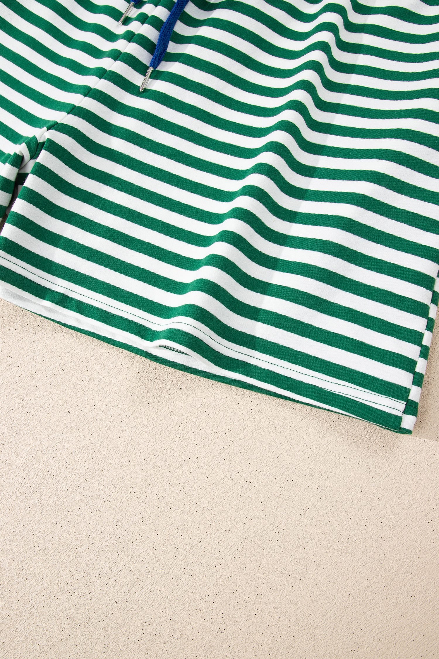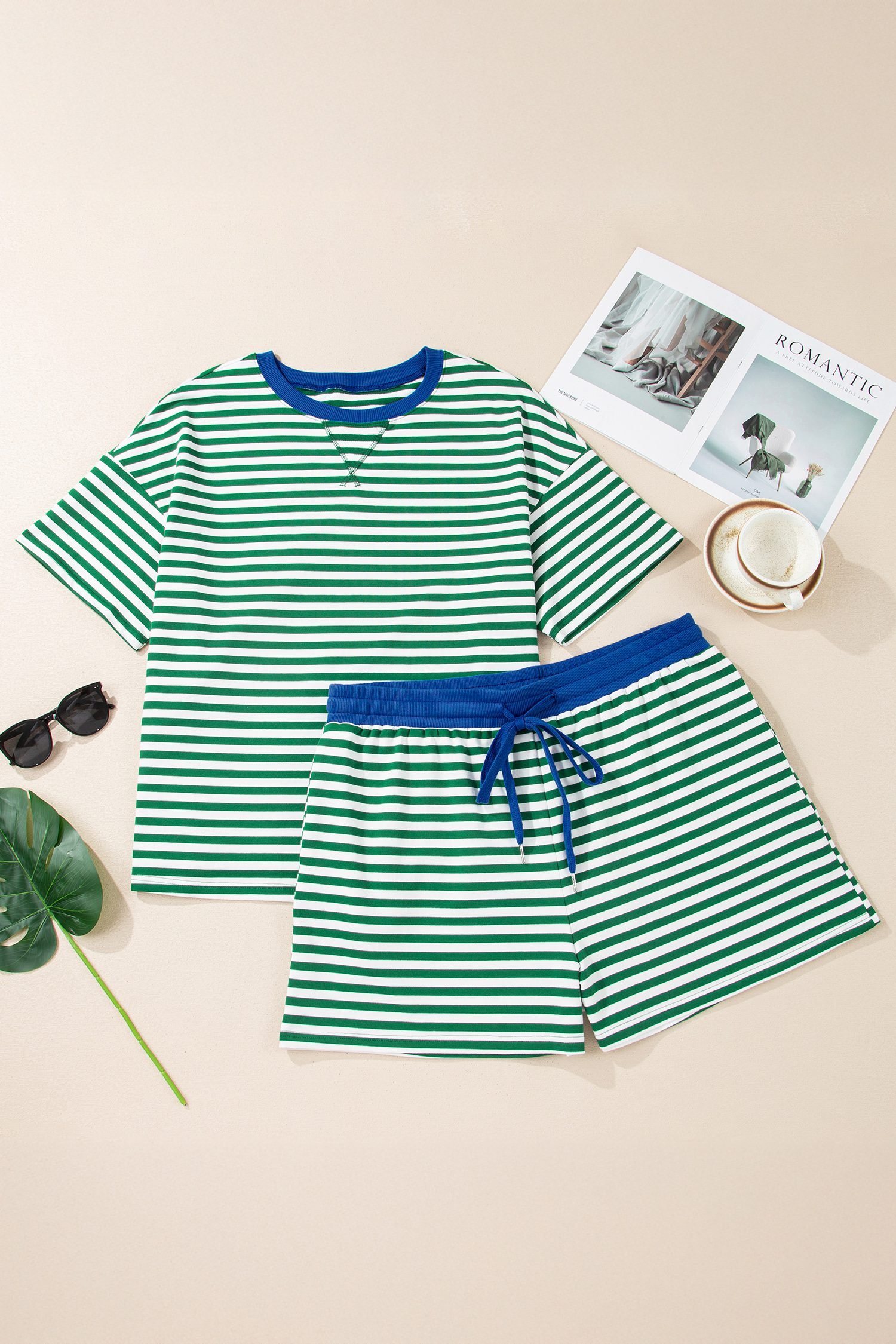 Green Stripe Boxy Tee Drawstring Elastic Waist Plus Size Short Set