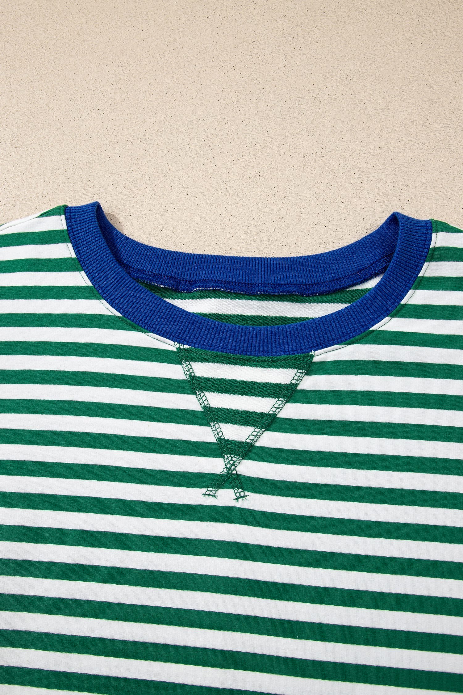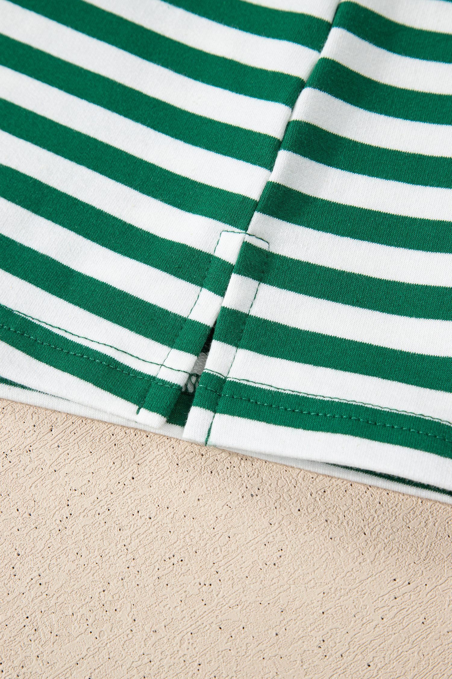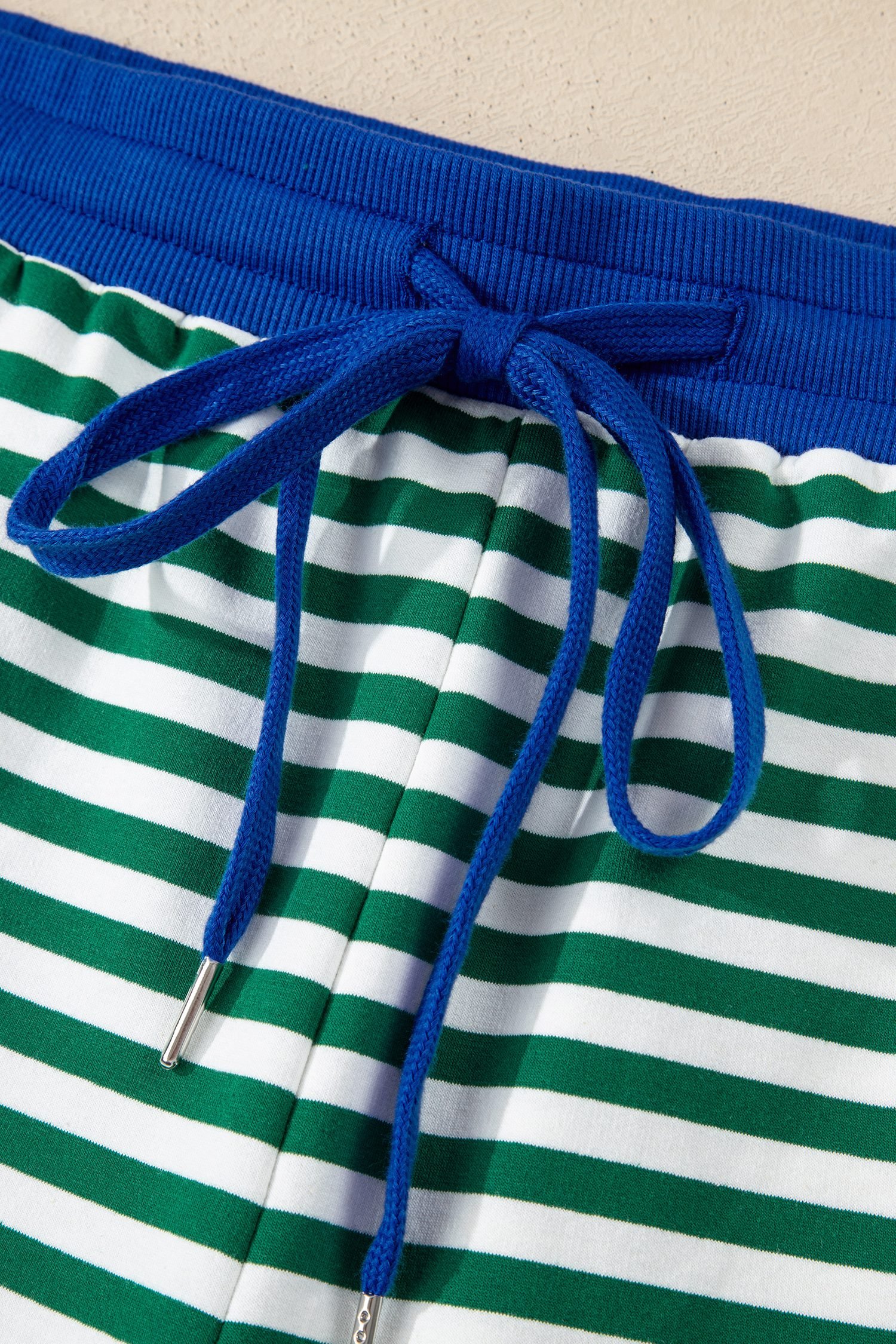 Green Stripe Boxy Tee Drawstring Elastic Waist Plus Size Short Set