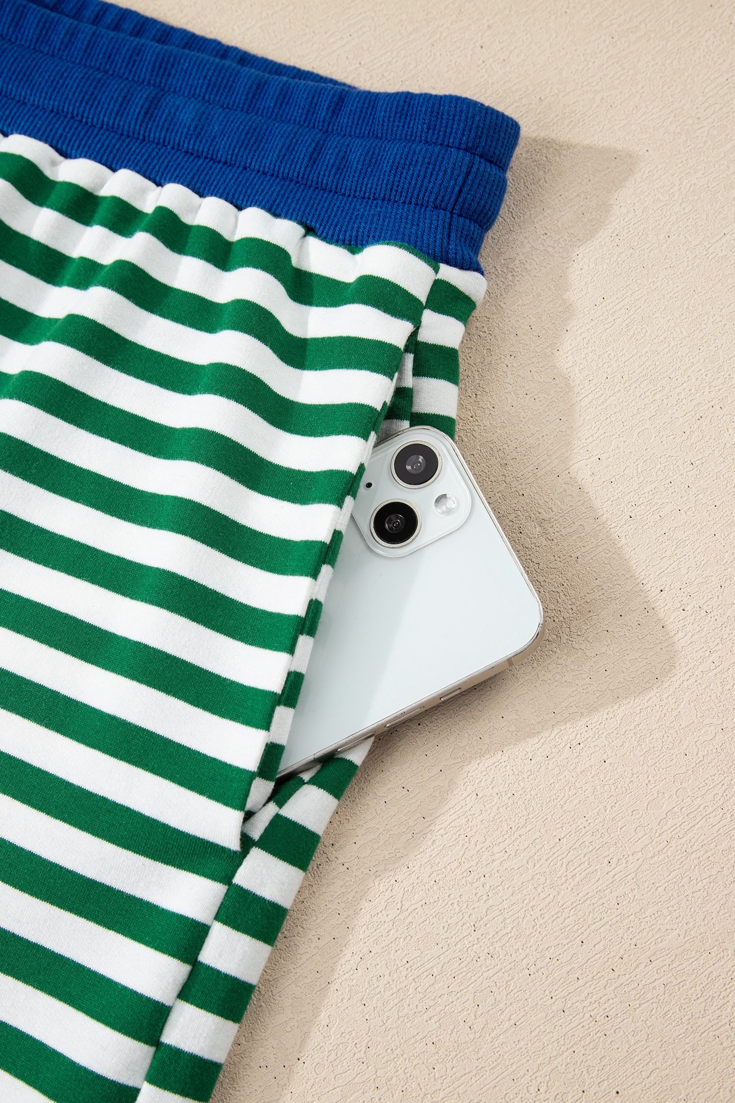 Drawstring elastic waist shorts ensure adjustable, comfortable fit.