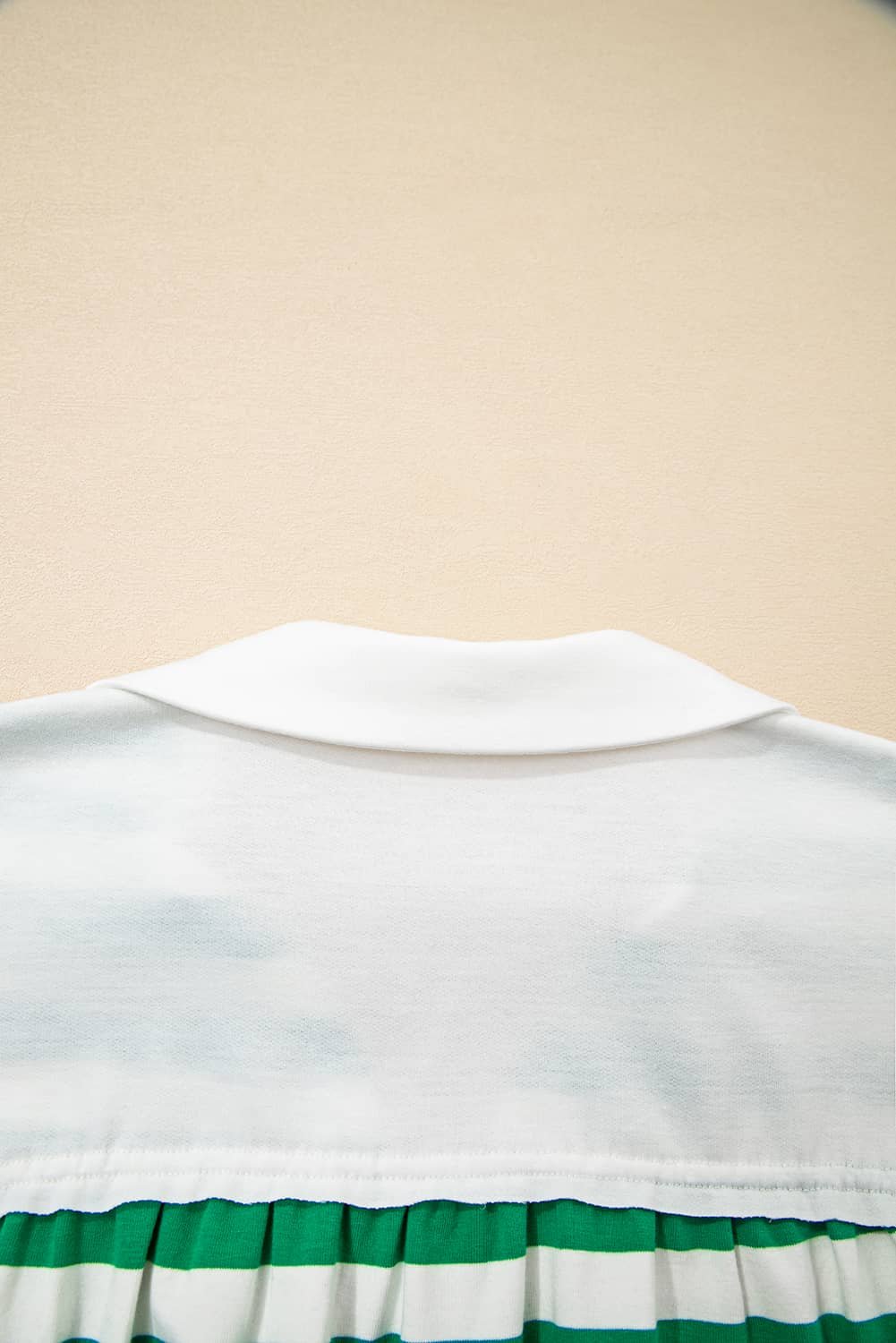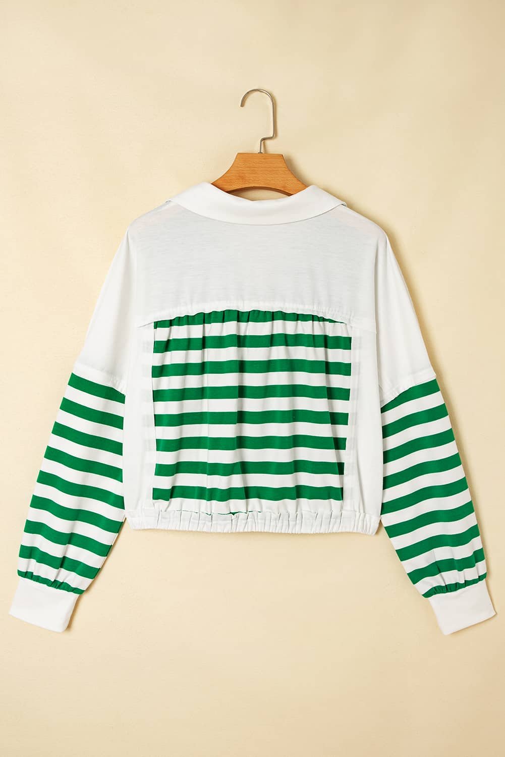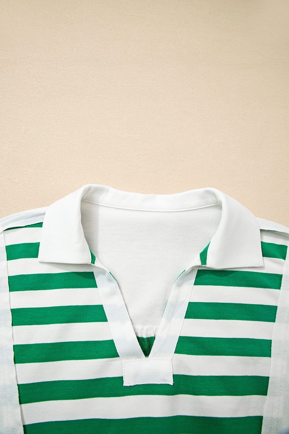 Chic collared V-neck adds a touch of sophistication.
