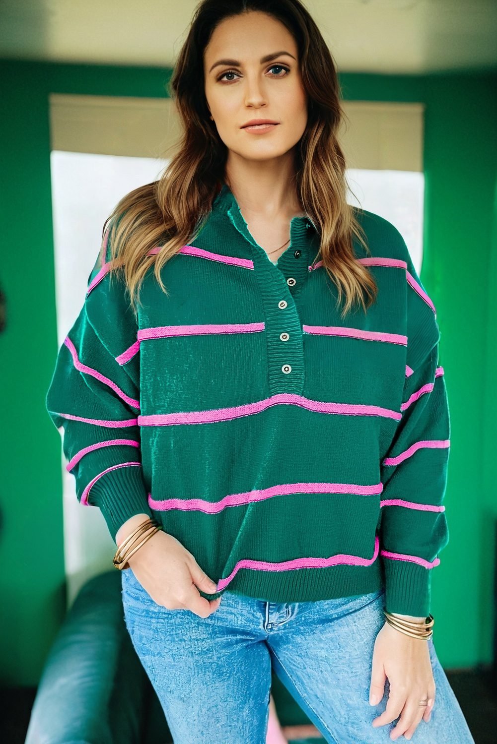 - This plus sweater with striped pattern is classic and chic.