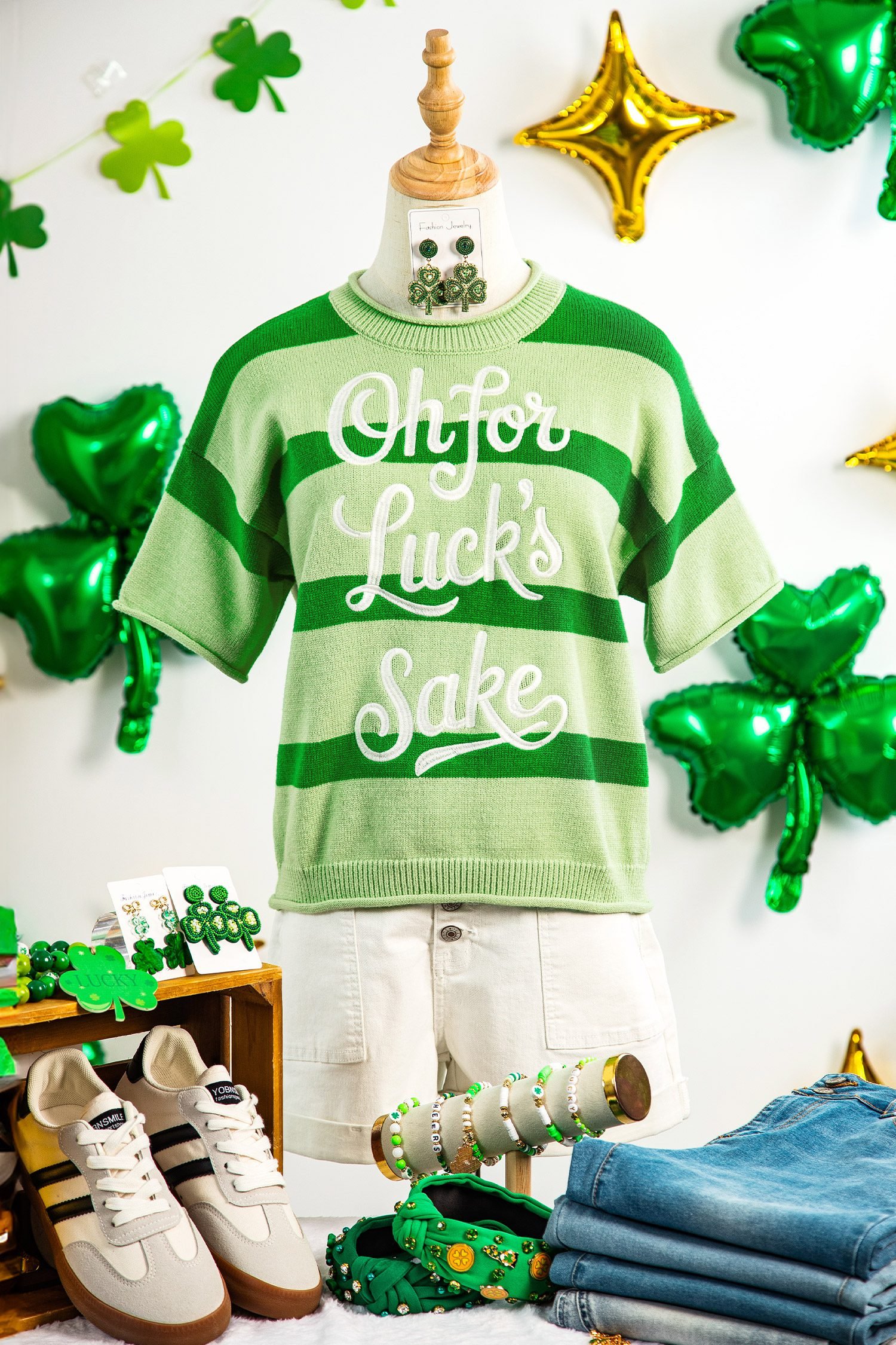 Pairs great with jeans for St. Patrick’s Day celebrations.