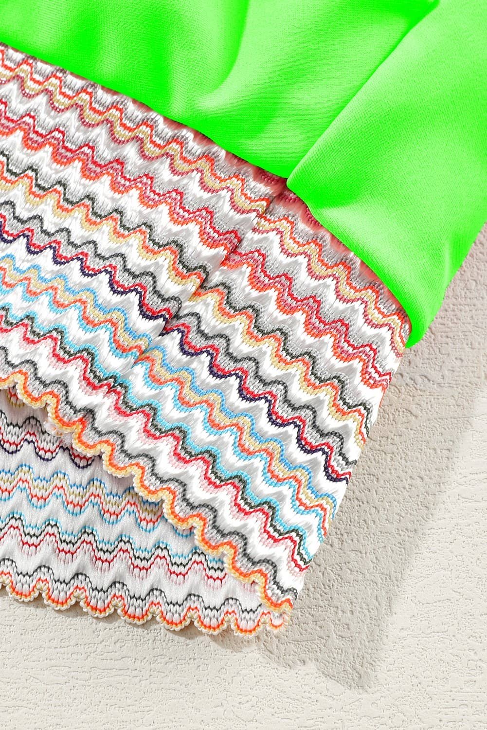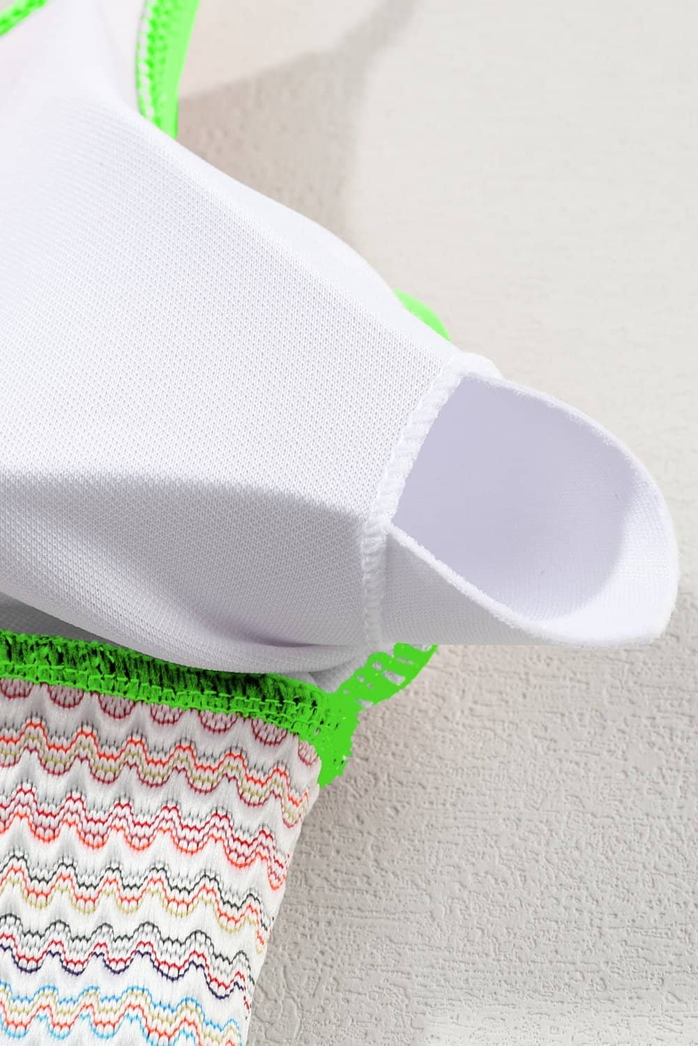 - With its unique striped patchwork design, the swimsuit is very trendy and chic
