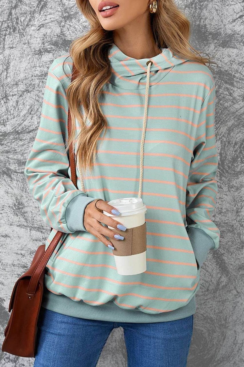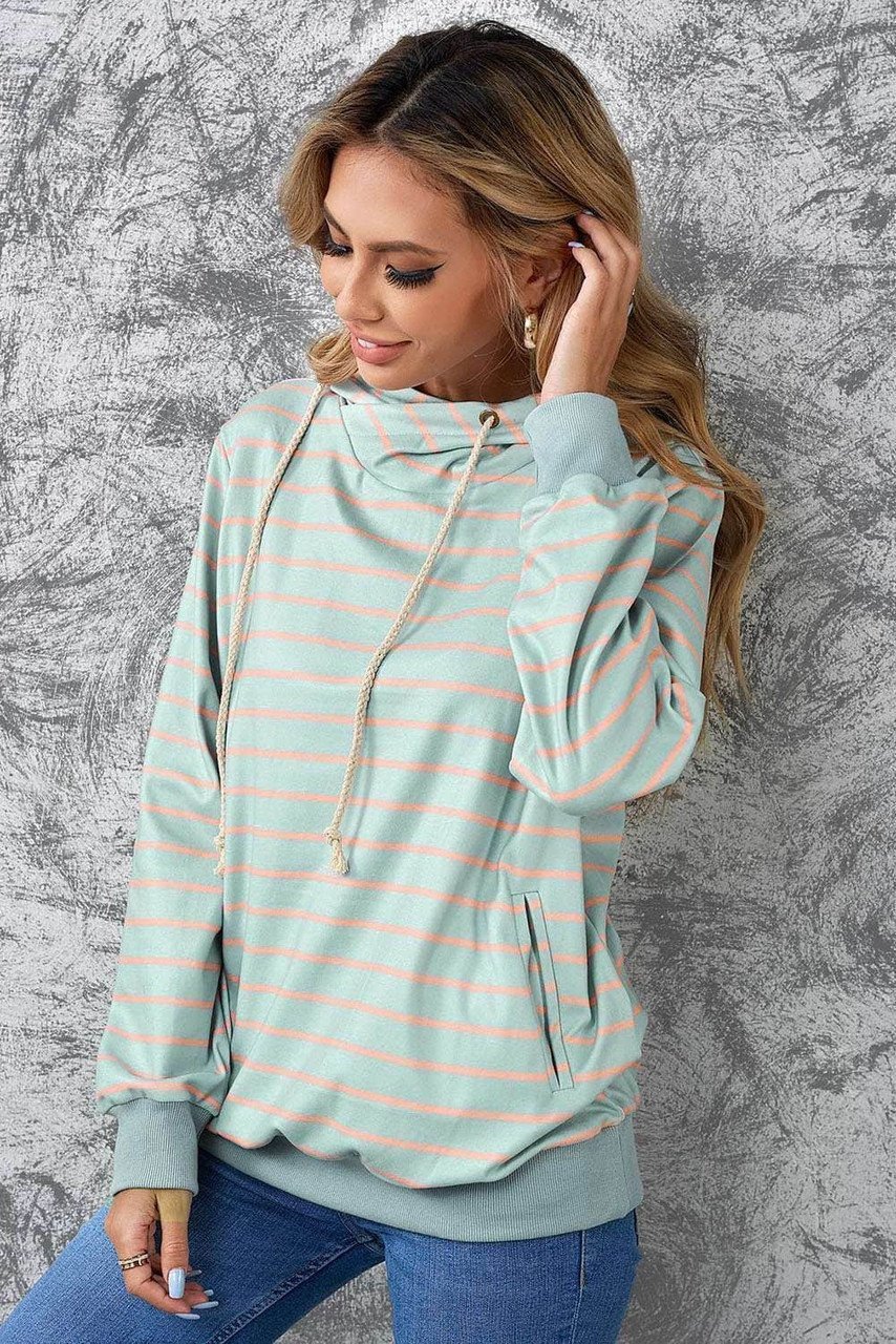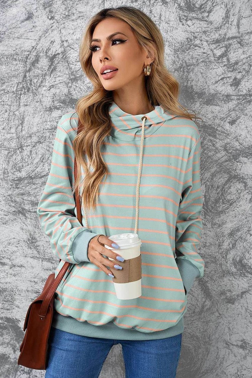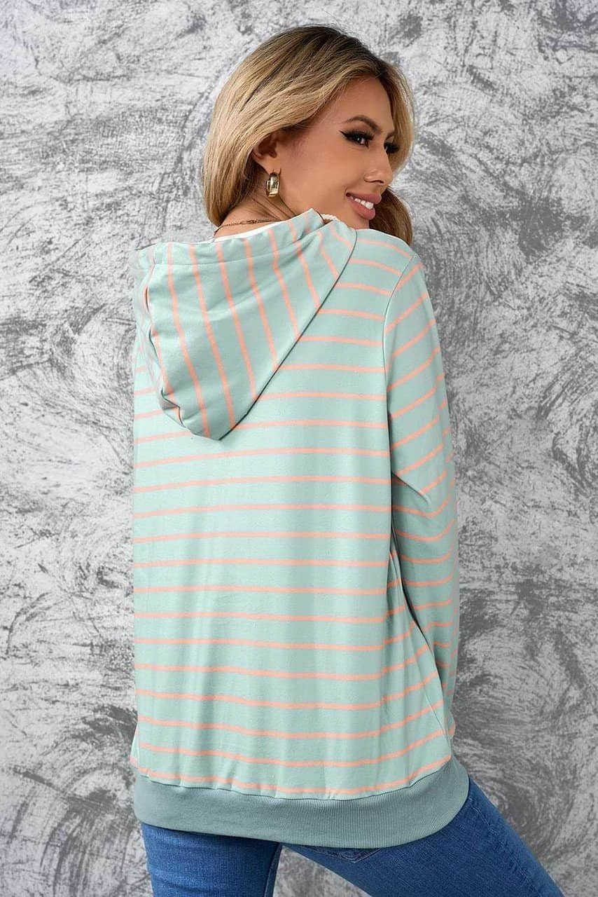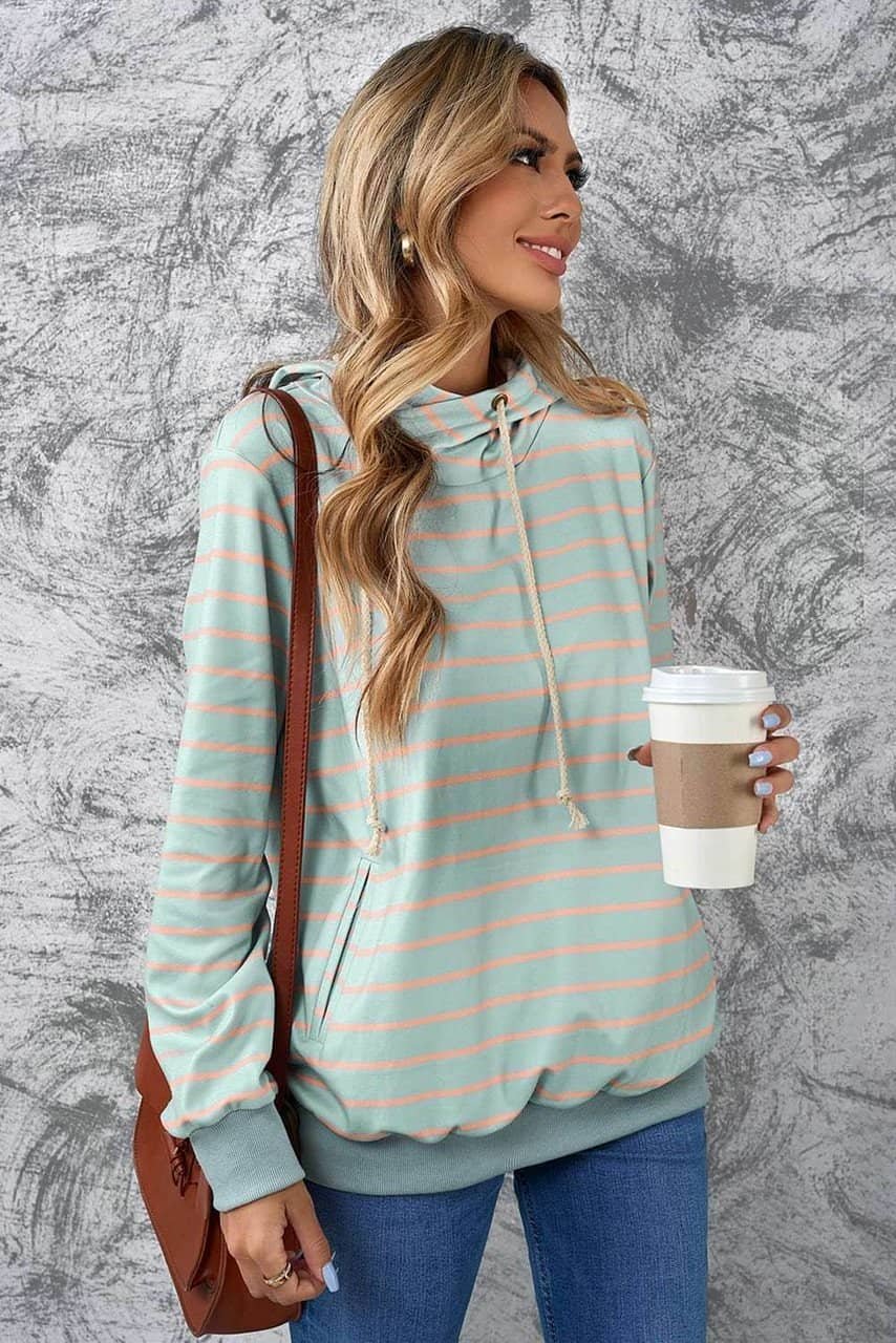 •Striped print in the hoodie highlights your chic style