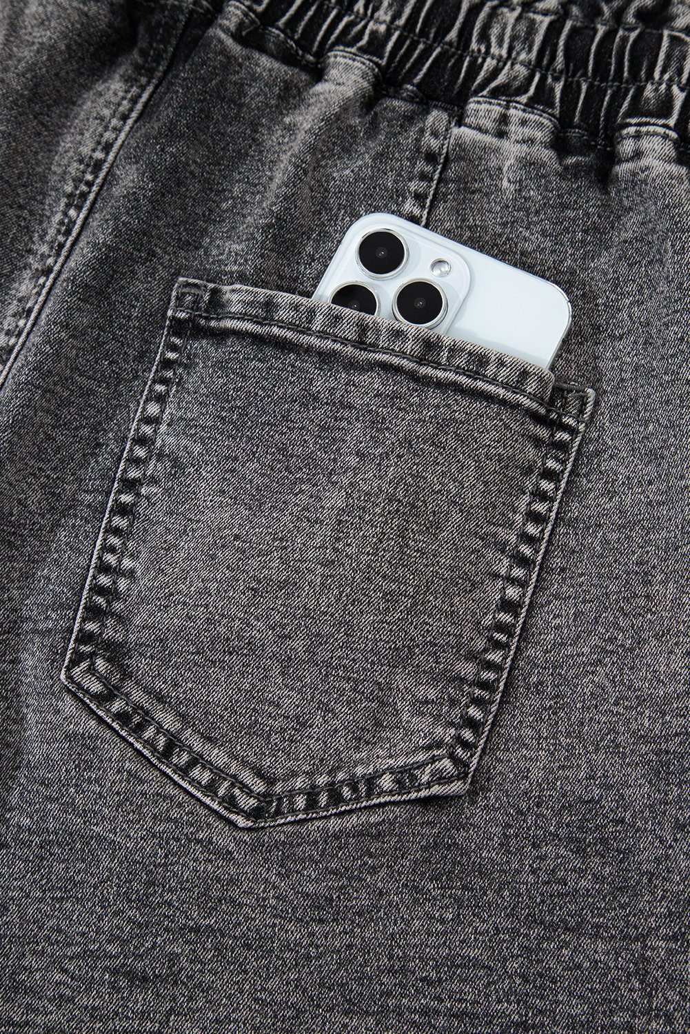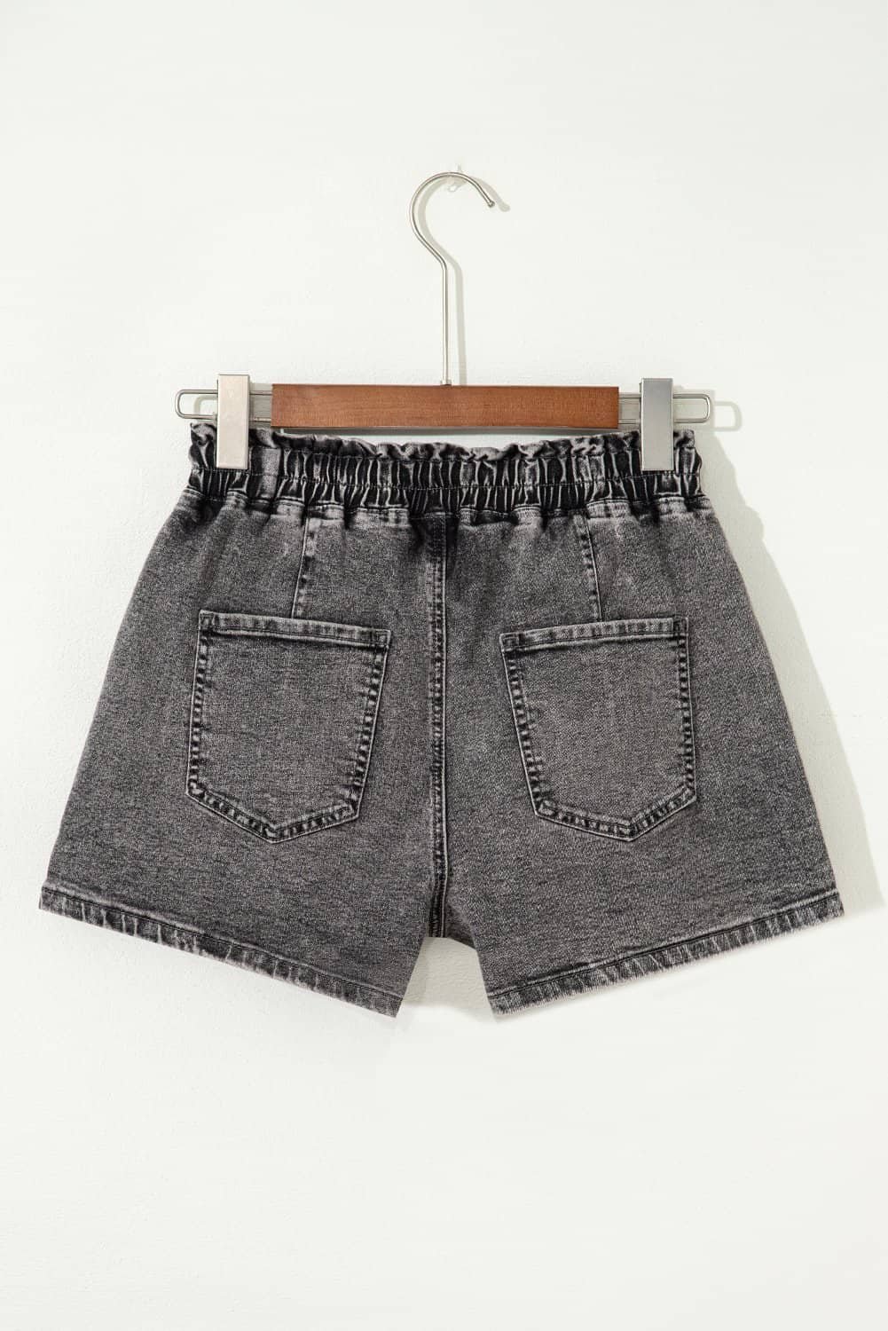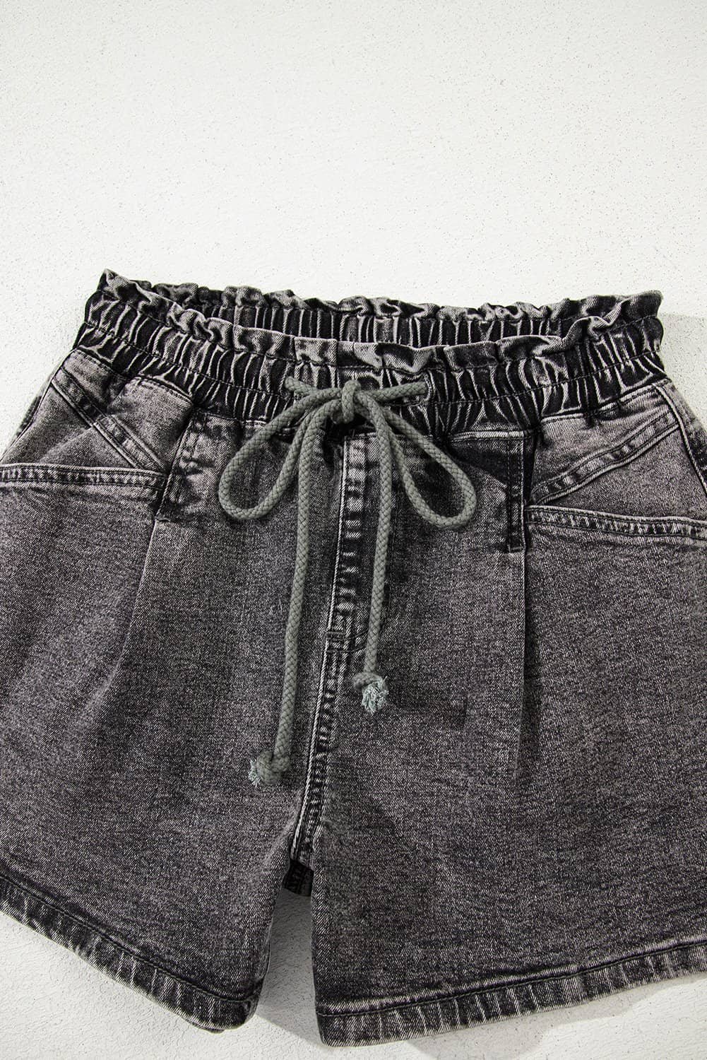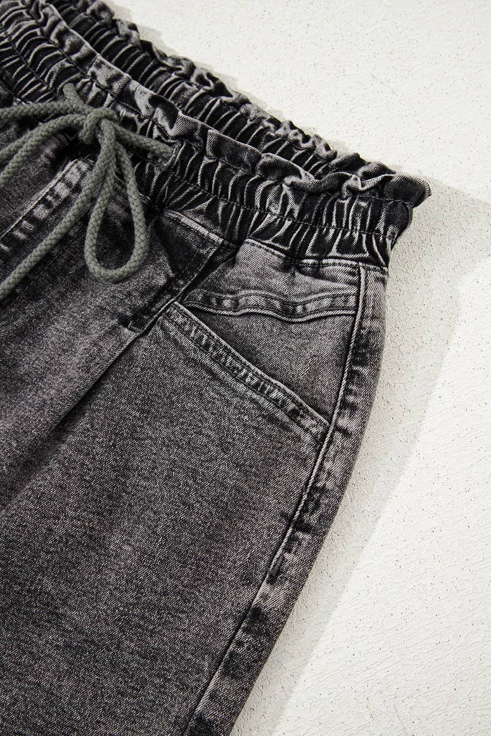 The high waist with drawstring is elastic and adjustable.