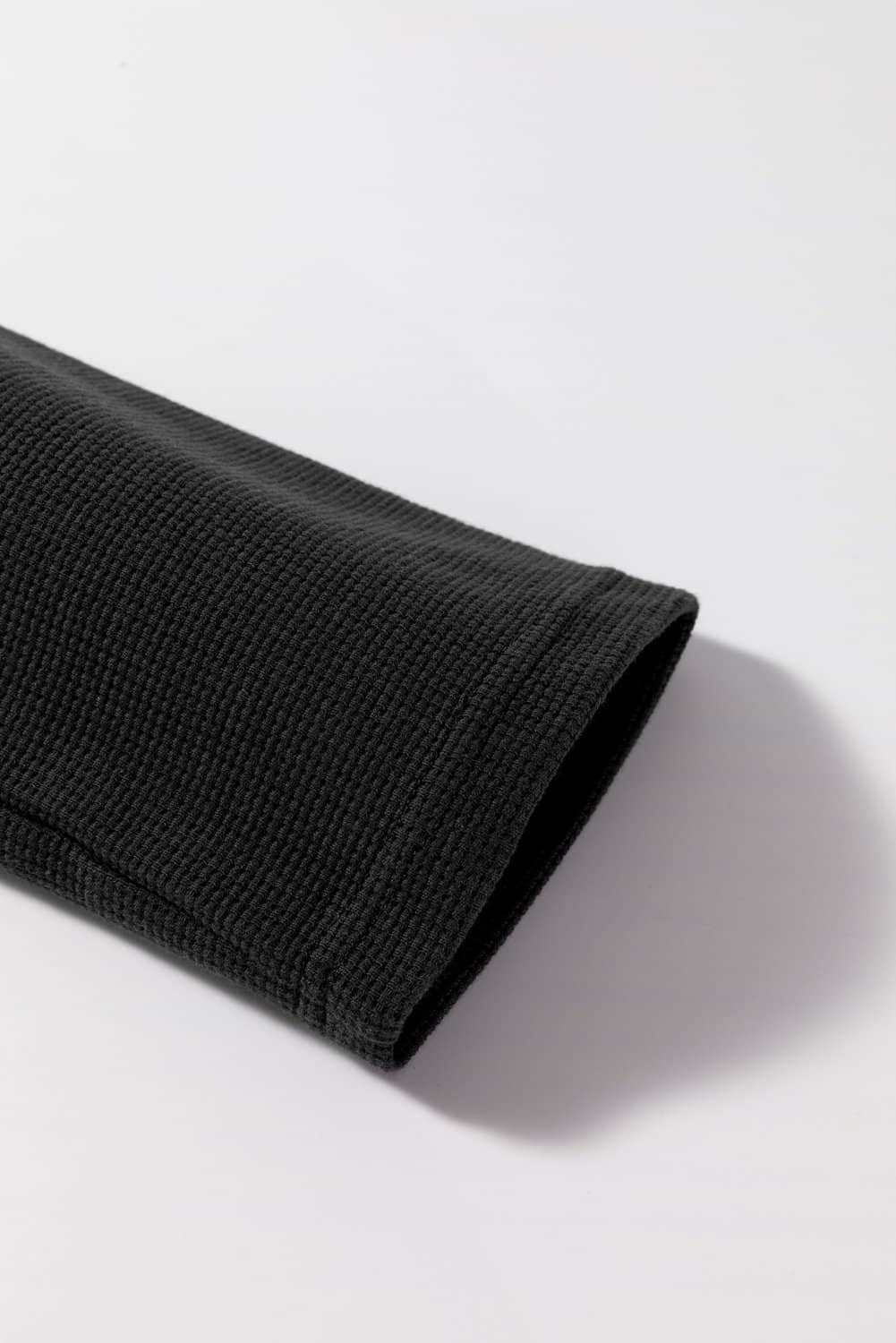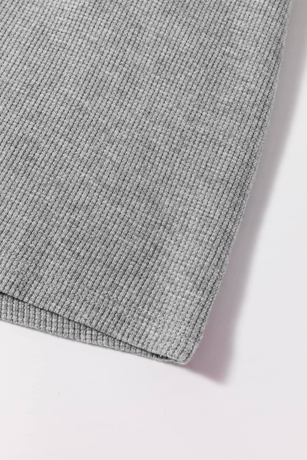 Waffle knit fabric is perfect for layering or wearing on its own .
