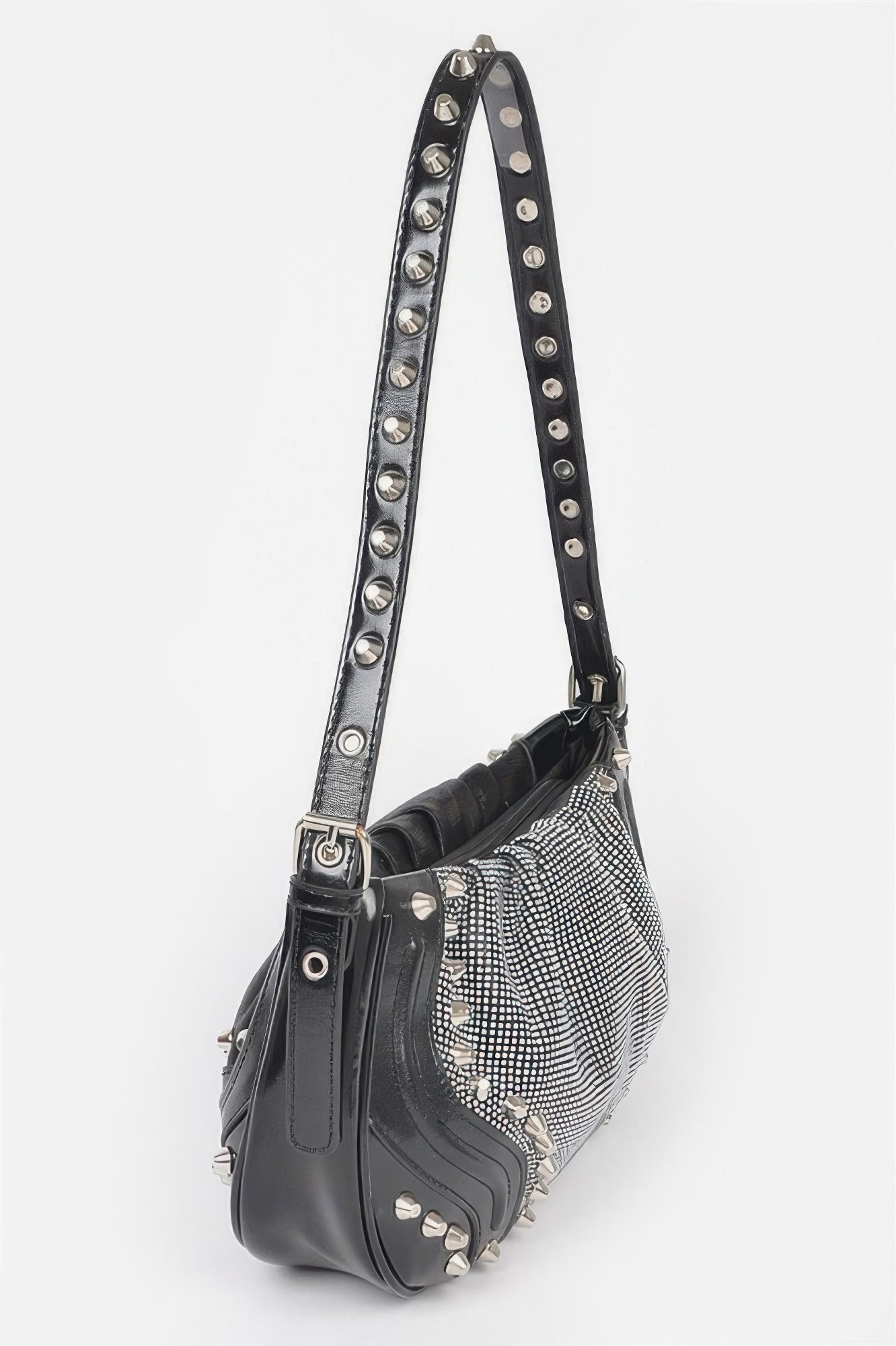 Product Description: Hot Fix Stones Metal Stud Shoulder Bag delivers standout style with its compact silhouette and eye-catching finish. Designed to shimmer, this bag adds a glam touch to your evening or party look. Crafted from Polyurethane, Mixed Metal, the design ensures durability with a luxe finish. Measuring approximately 11.5 x 6 x 3 inches, it’s perfectly sized for easy wear. Compact yet impactful, it’s ideal for when you want to carry just the essentials in style. Pair it with anything from jeans to dresses to elevate your overall look. Product Details: Crafted from Polyurethane, Mixed Metal Approx. dimensions: 11.5 x 6 x 3 inches Compact silhouette ideal for essentials Eye-catching finish adds instant glam Versatile styling for day or night Lightweight and easy to carry Size Guide: For accurate sizing guidance, please review our size chart available on the website. Shipping and Returns: Fast Shipping: We offer speedy delivery to your doorstep. Hassle-Free Returns: If you’re not completely satisfied, our flexible return policy ensures your peace of mind.