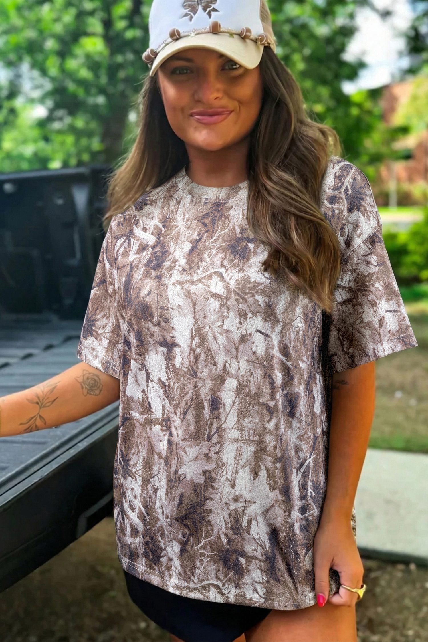 Laid-back meets bold in this ultra comfy oversize camo tee.