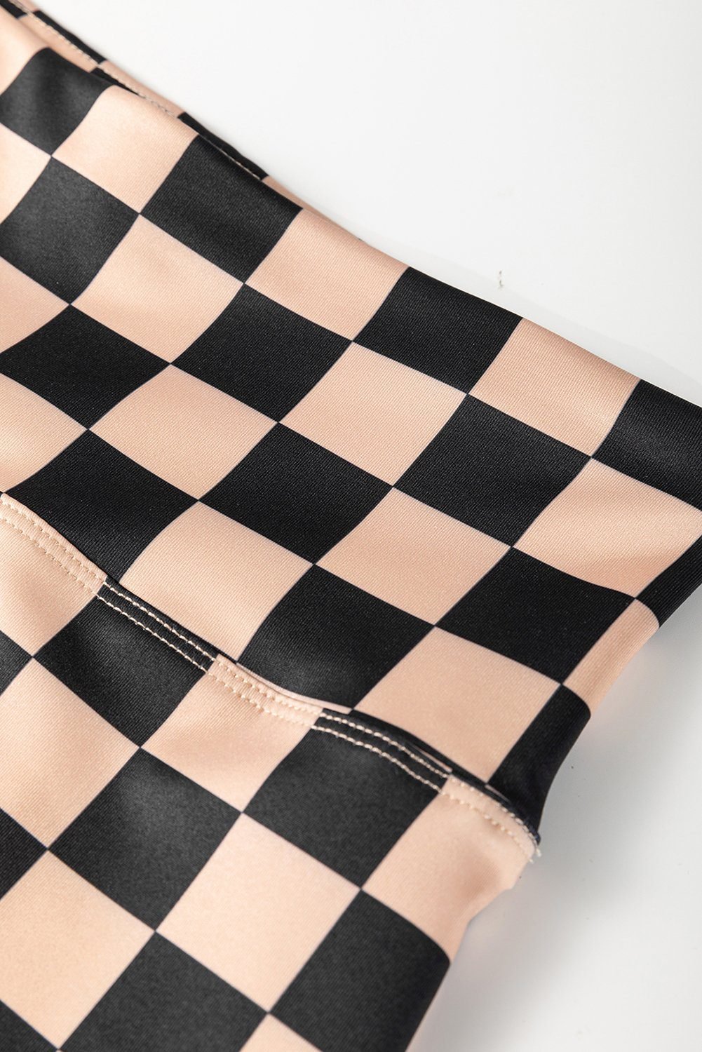 Khaki Checkered Pattern High Waist Skinny Leggings