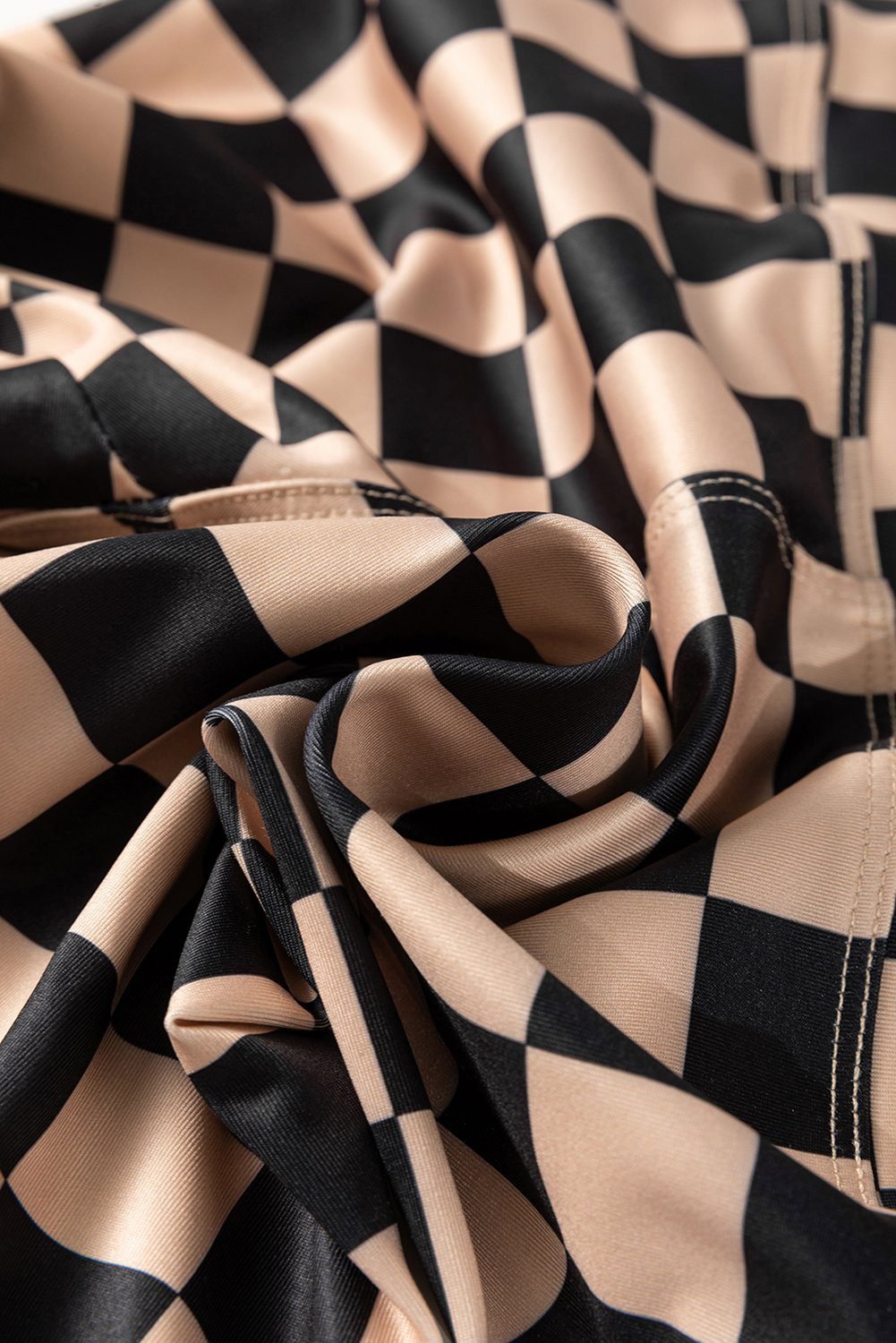 • These leggings are designed with a bold checkered pattern that makes a strong visual impact.
