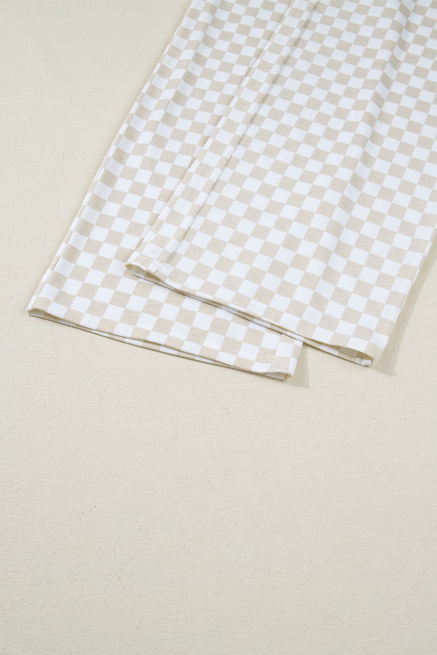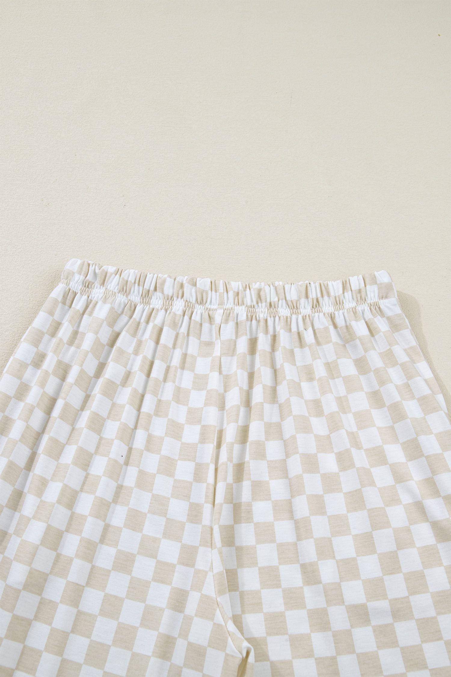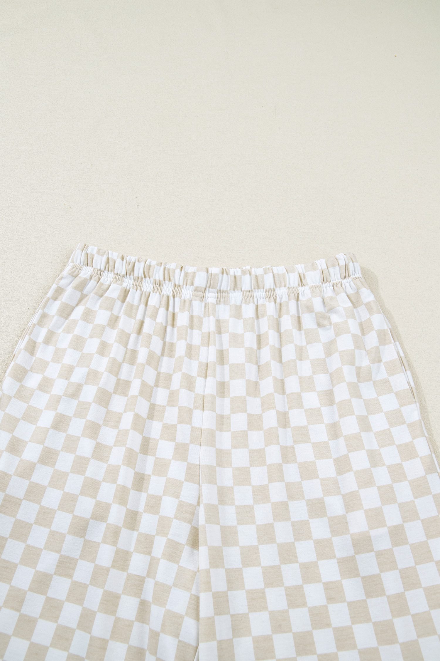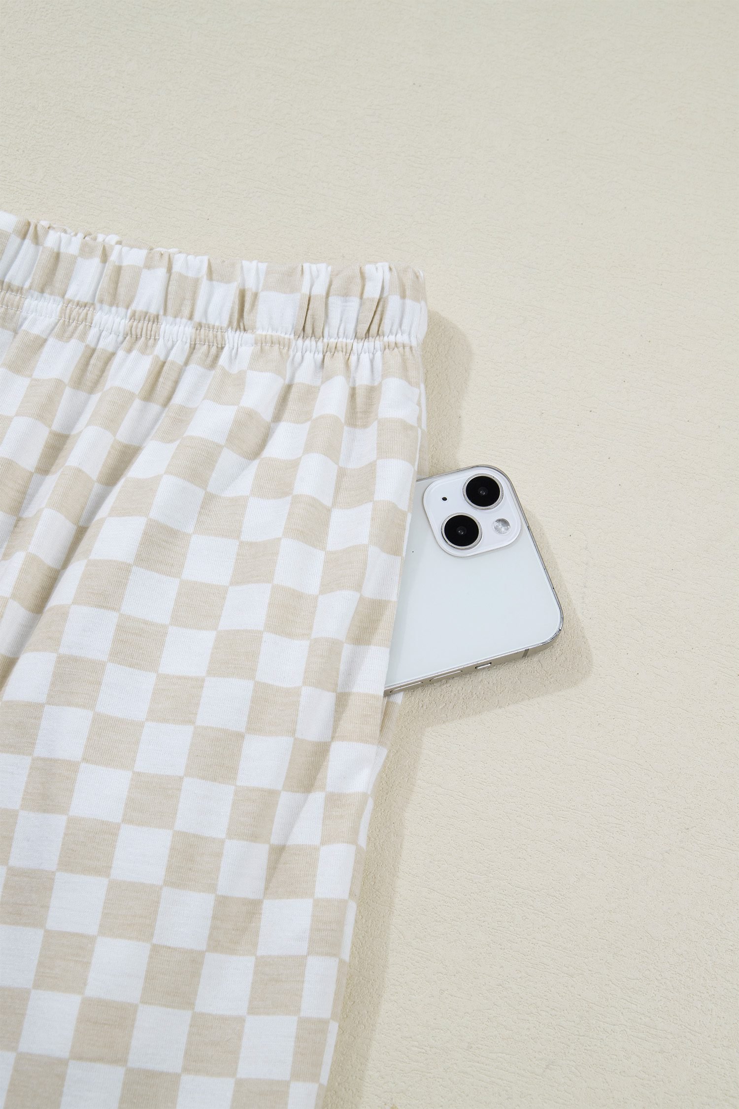 Checkered print lounge set gives a relaxed, trendy everyday look.