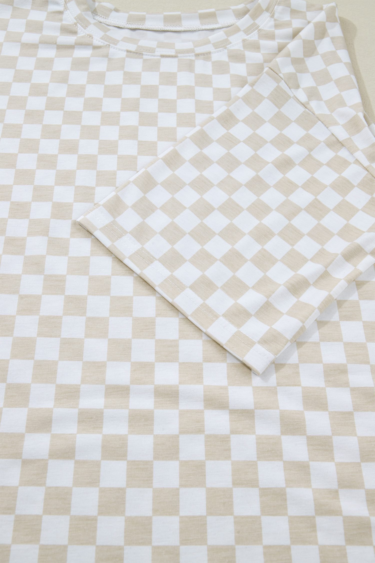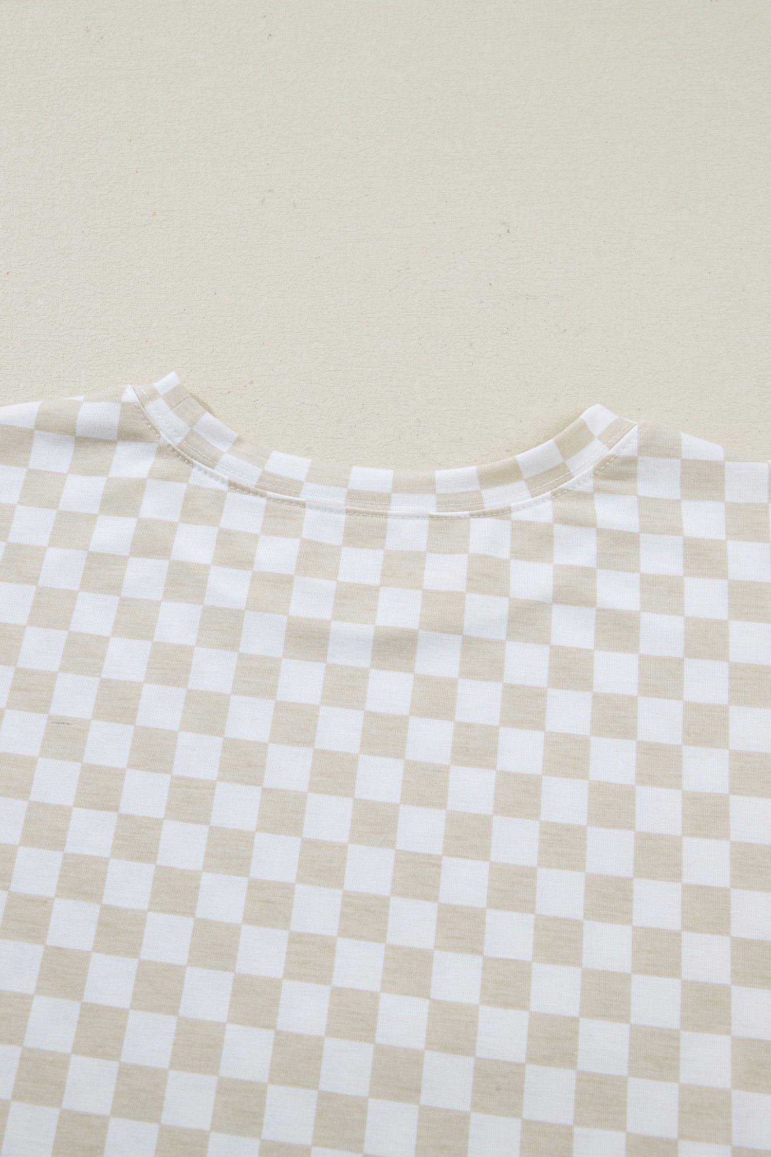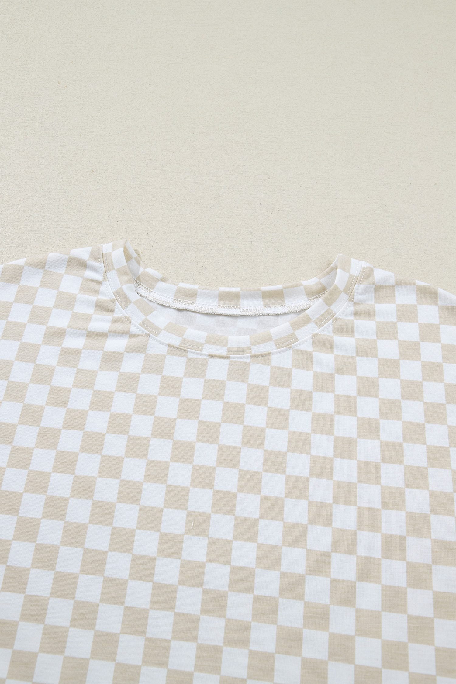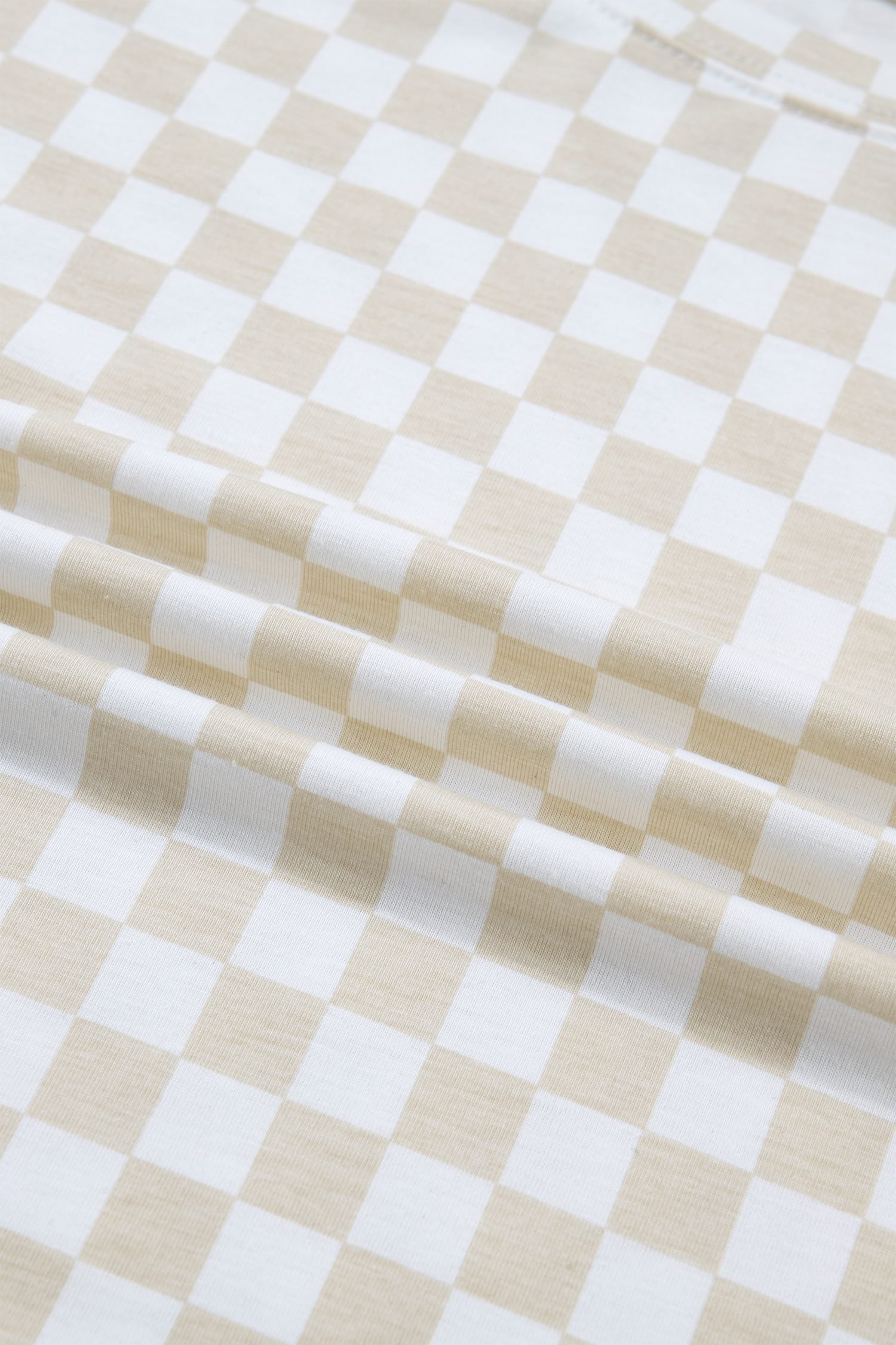 Checkered print lounge set gives a relaxed, trendy everyday look.