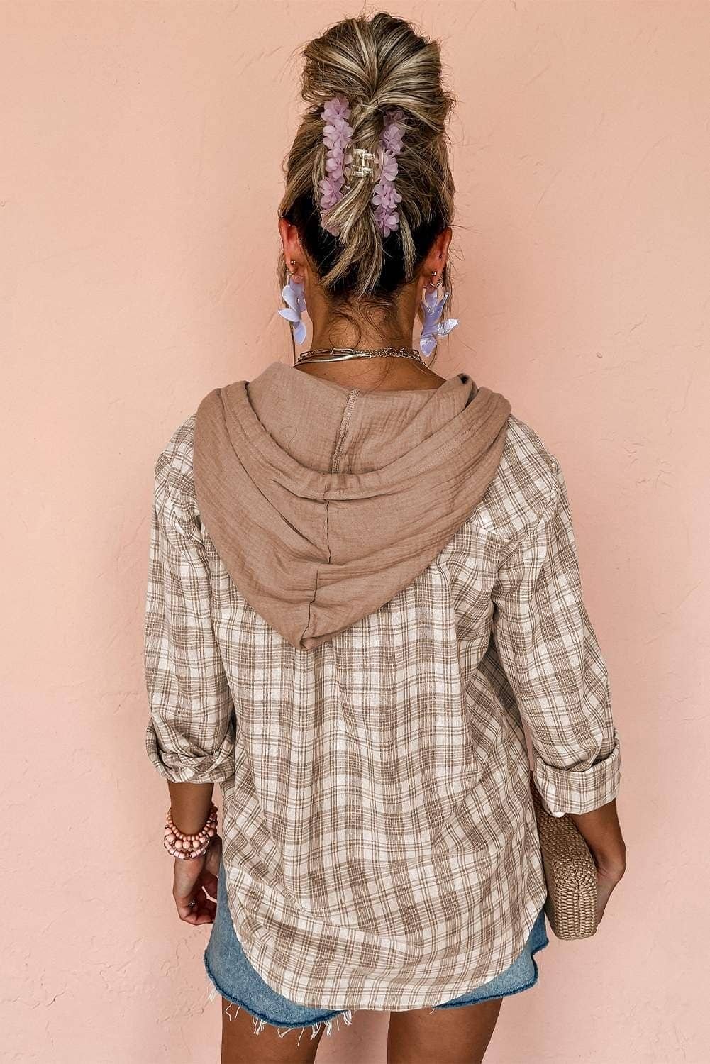 The checkered print is a timeless addition that brings visual interest to the shacket.