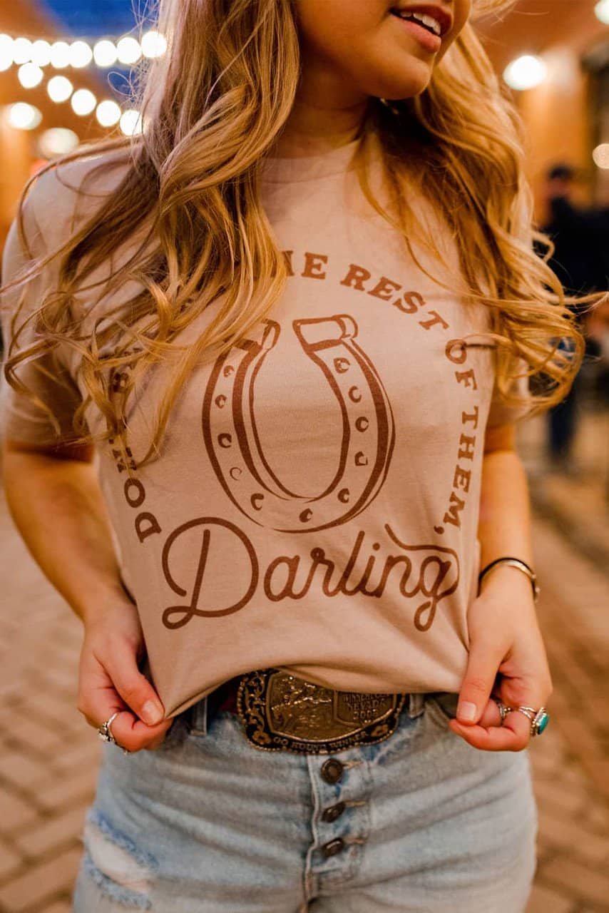 Be the first to review “Khaki Darling Letter Graphic Print Short Sleeve T Shirt”