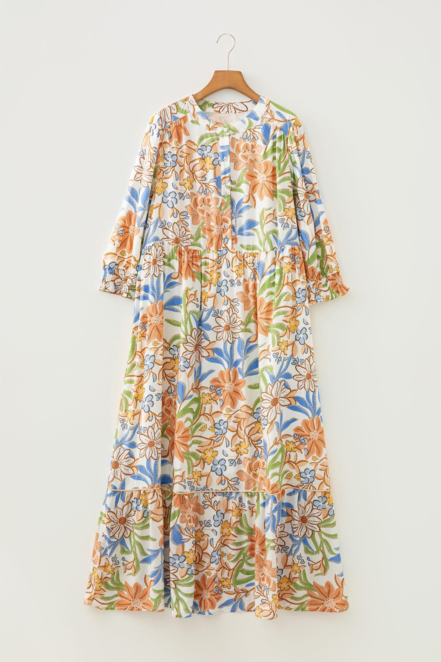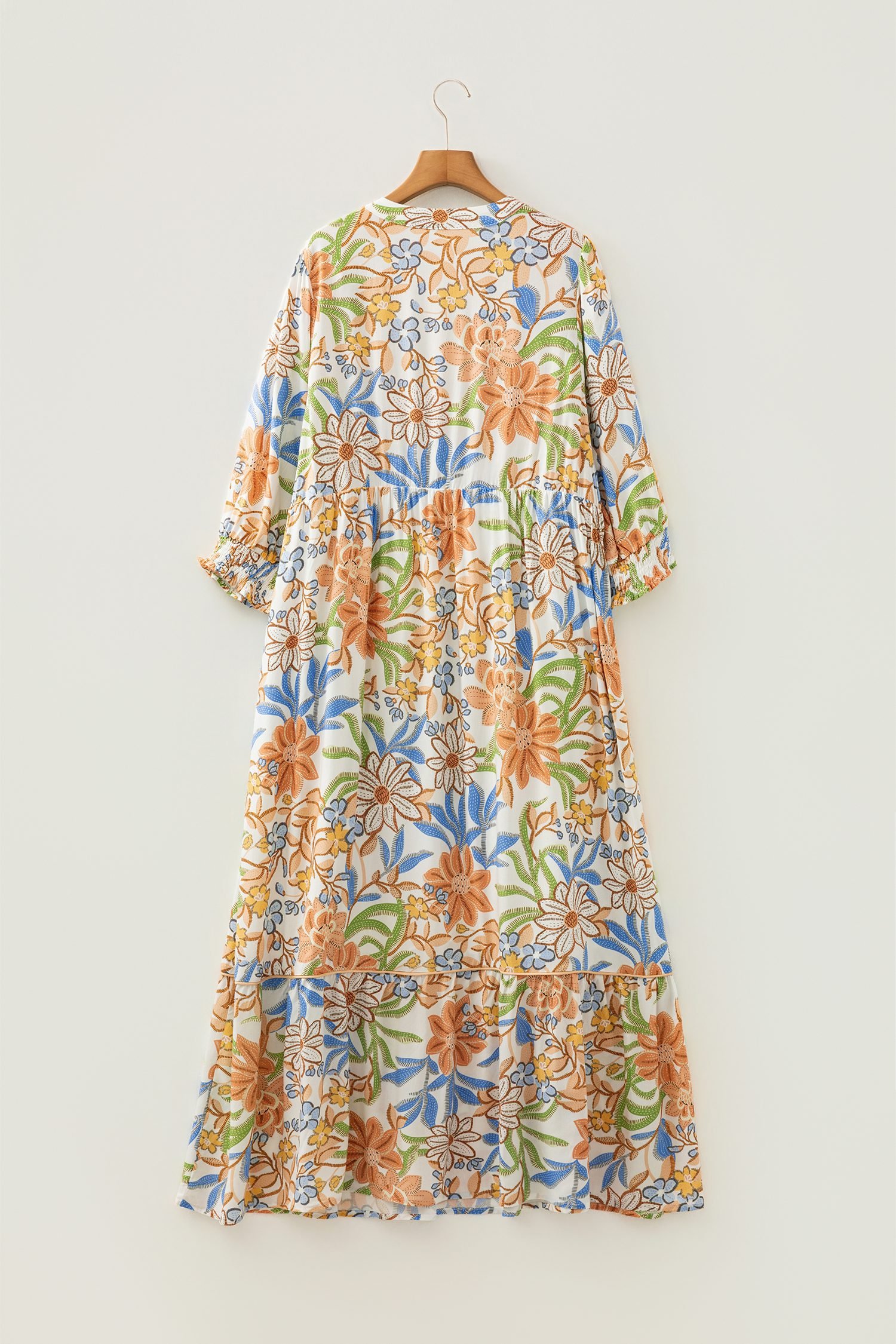 Be the first to review “Khaki Floral Print 3/4 Sleeves Tiered Plus Size Long Dress”
