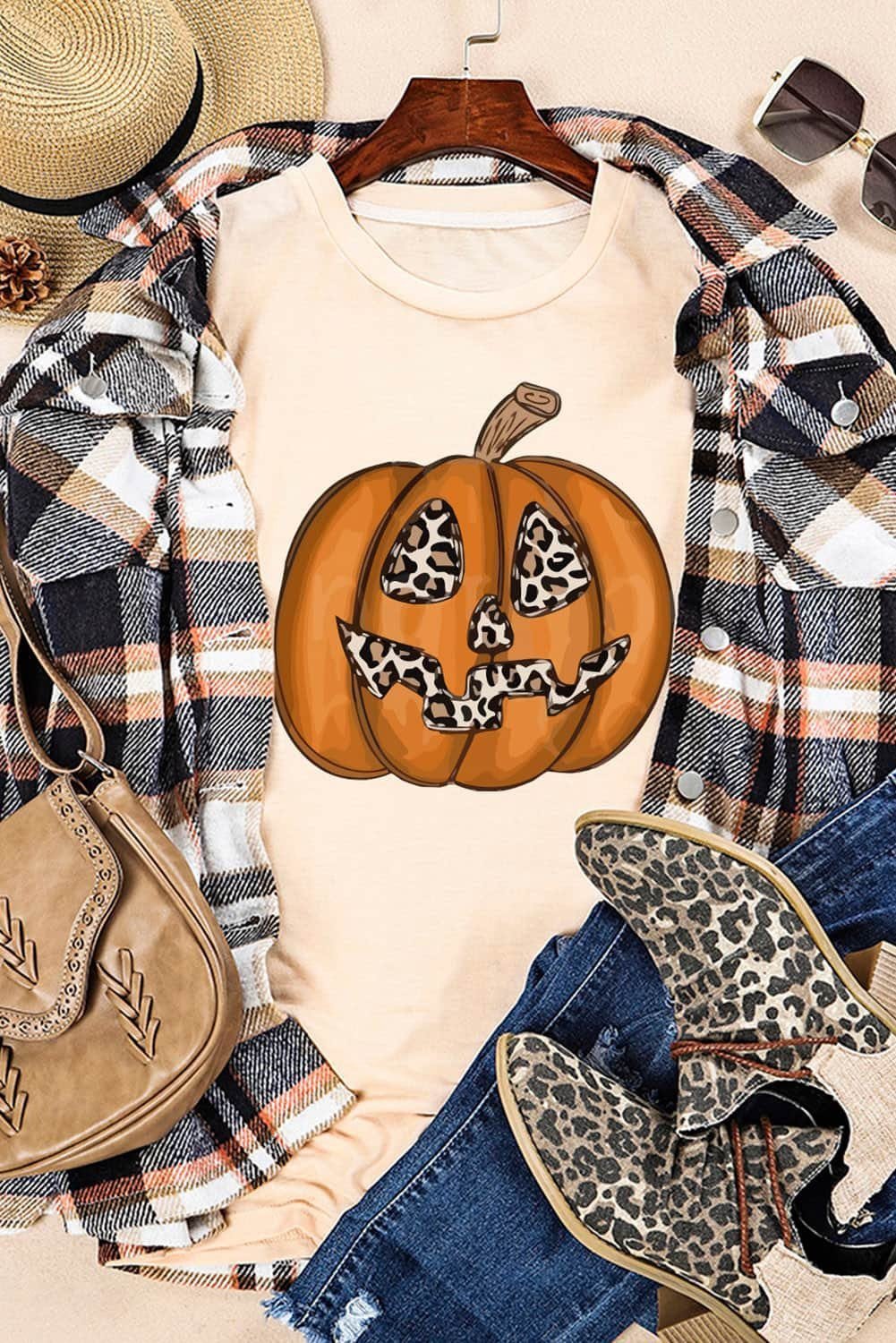 Be the first to review “Khaki Halloween Leopard Pumpkin Print T Shirt”